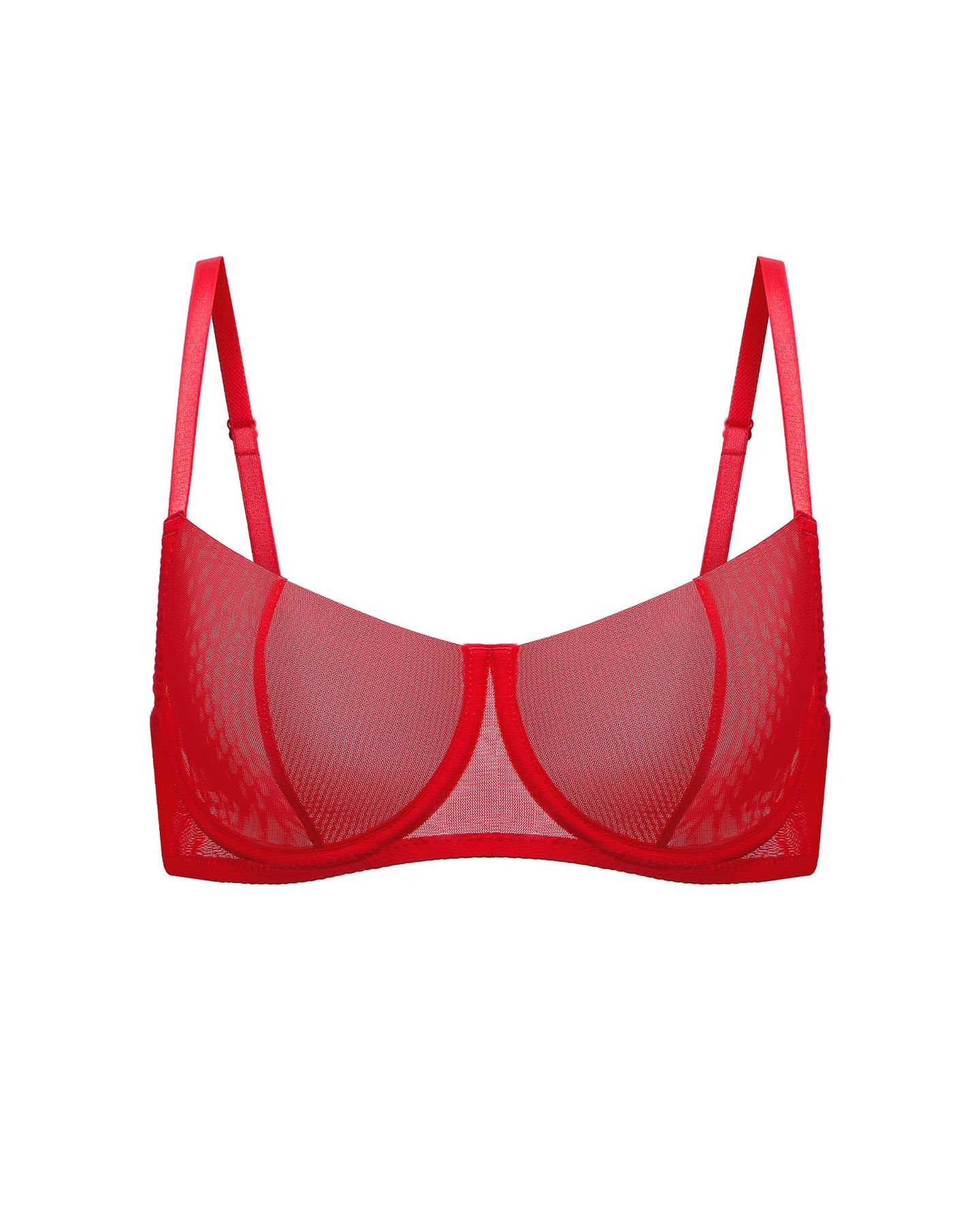 Изысканный и лёгкий, этот бюстгальтер-балконет Veil от Scandale Manière выполнен из эластичной сетки, которая мягко облегает тело и точно повторяет форму груди. Модель сочетает чувственную лёгкость и надёжную поддержку — благодаря плотному основанию с каркасами и продуманной посадке.