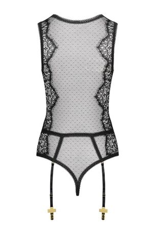 Боди Inspiration divine со стрепами бренда Maison Close — воплощение соблазна и изящества. Полупрозрачная сетка подчёркивает линии тела, а кружевные вставки создают утончённый контраст на коже. Эластичные стрепы визуально моделируют силуэт и добавляют образу уверенности и дерзости.