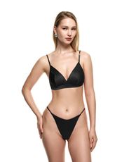 На Элли бралетт LEYA с короткой вытачкой из натурального шелка размер S, трусы V-стринги LEYA из натурального шелка размер М