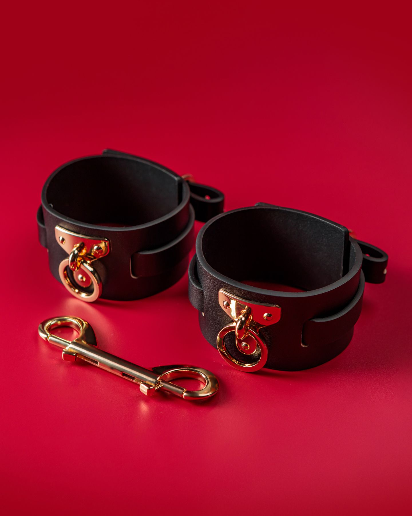 Браслеты-наручники для рук из натуральной кожи Back to black — вызывающий и надёжный аксессуар, соединяющий эстетику силы и чёткую геометрию формы. Мягкая, но плотная кожа комфортно облегает запястья, а металлический карабин позволяет зафиксировать положение или соединить браслеты между собой.