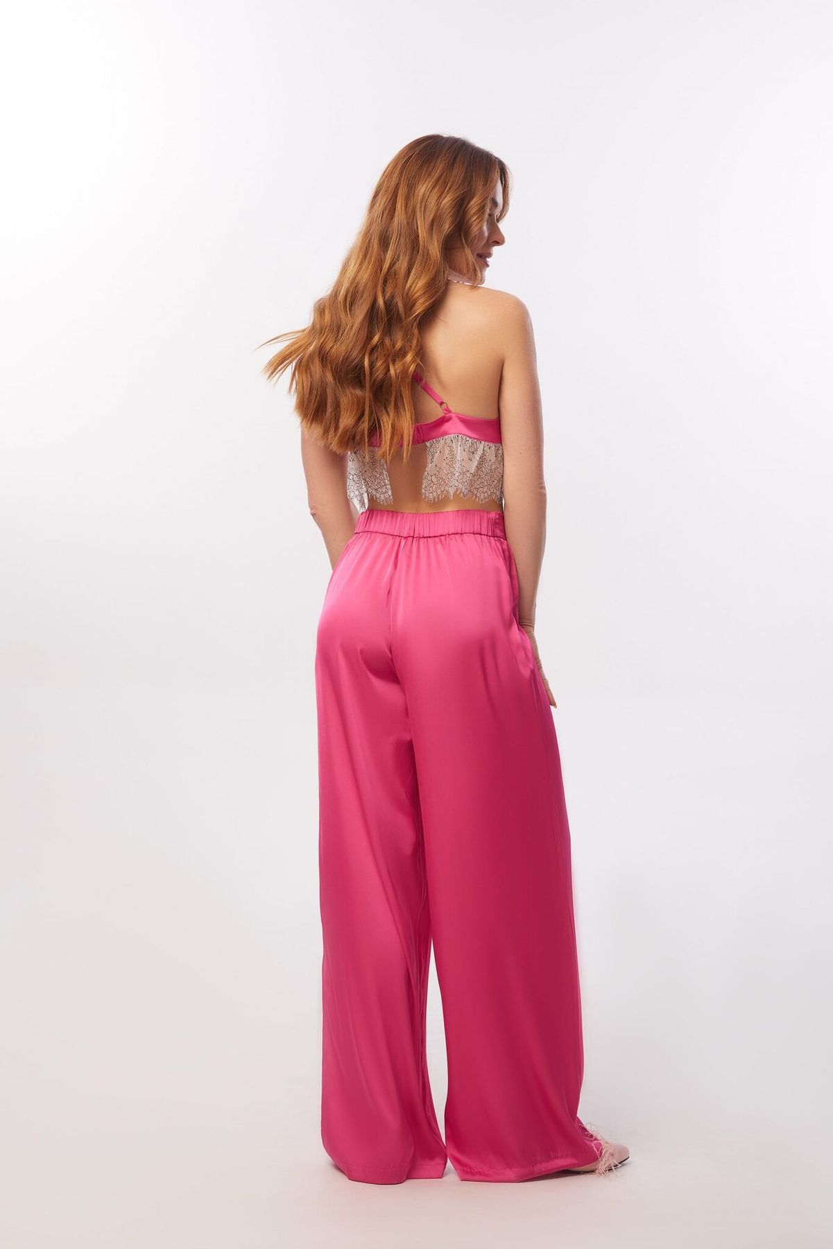 Шёлковые брюки-палаццо Serena подчёркивают фигуру благодаря плавному, ниспадающему силуэту. Свободные, прямые от пояса, они мягко облегают талию и красиво движутся при каждом шаге.