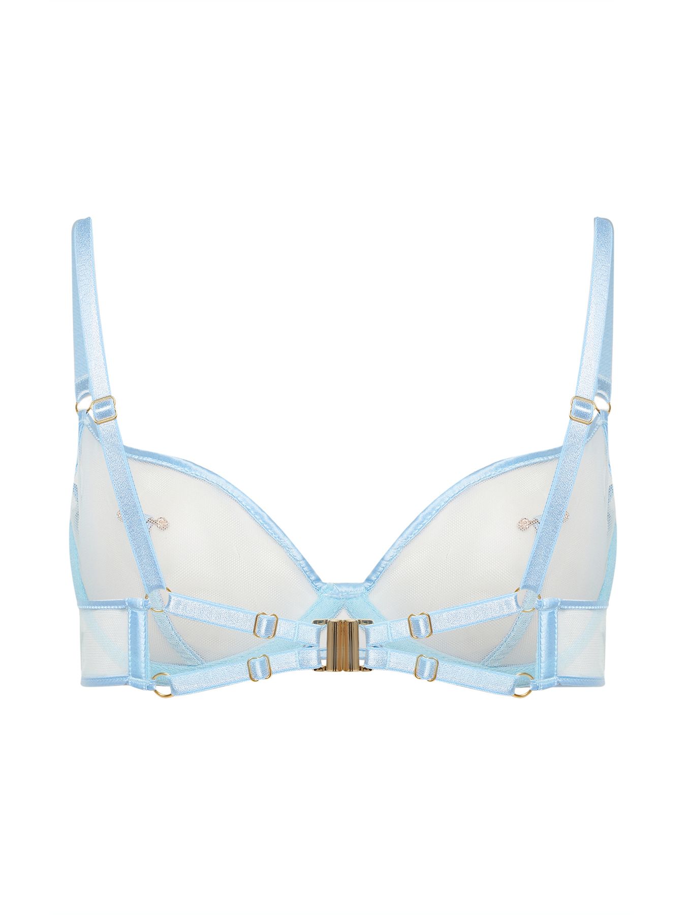 Бюстгальтер Glow создан для тех, кто говорит телом и любит ощущение свободы в каждом движении. Полупрозрачная бельевая сетка, мягкие чашки на косточках и глубокий вырез формируют эффектное декольте. Тонкие регулируемые бретели подчёркивают хрупкость плеч, а золотистая фурнитура с декоративным съёмным пирсингом добавляет дерзкий акцент.