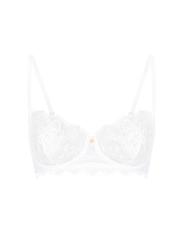 Классический бюстгальтер из французского кружева Шантильи — сочетание традиционного силуэта и утончённой работы с деталями. Лёгкая полупрозрачная текстура кружева подчёркивает форму груди, а каркасная конструкция обеспечивает необходимую поддержку и стабильность посадки.