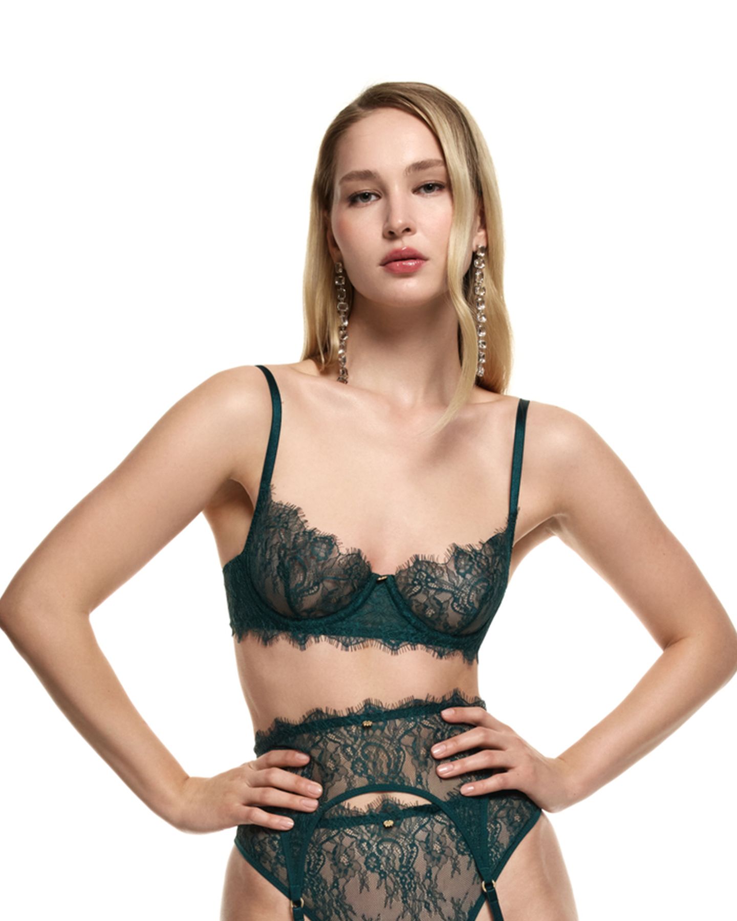 Классический бюстгальтер из французского кружева Шантильи — сочетание традиционного силуэта и утончённой работы с деталями. Лёгкая полупрозрачная текстура кружева подчёркивает форму груди, а каркасная конструкция обеспечивает необходимую поддержку и стабильность посадки.