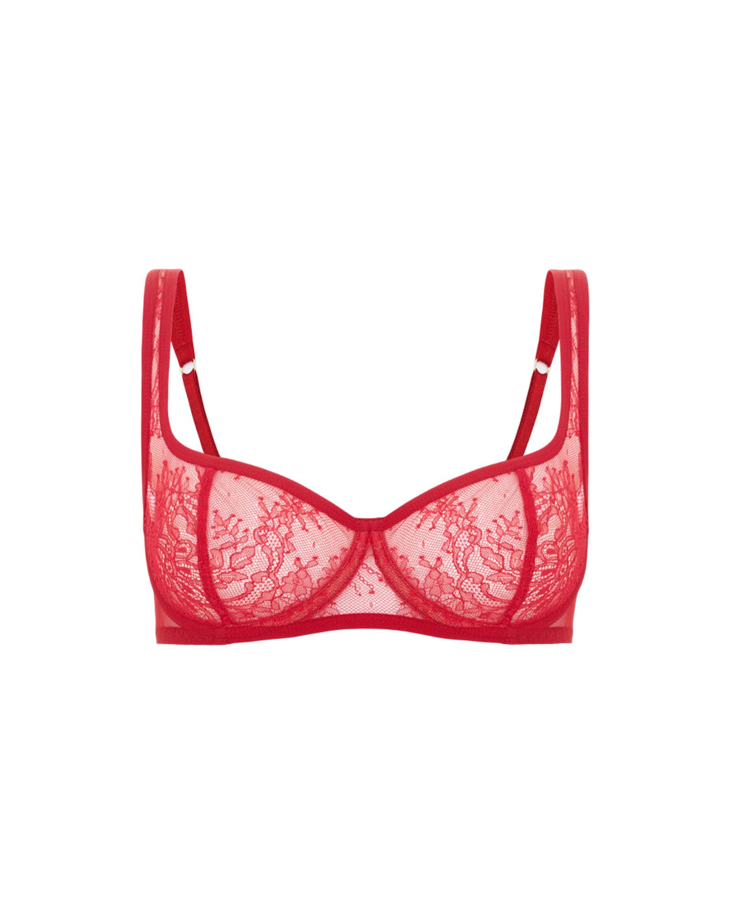 Бюстгальтер Joo red — мягкая модель на каркасах, сочетающая визуальную лёгкость и комфортную поддержку. Чашки выполнены из тонкого полупрозрачного кружева с цветочным узором, спинка — из эластичного тюля, который мягко адаптируется к фигуре.