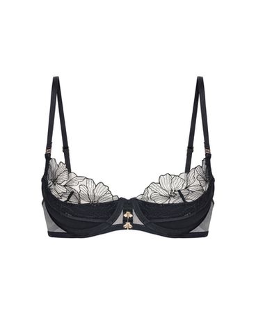 Бюстгальтер Lia выполнен из мягкого тюля с вышивкой в виде цветочного орнамента, дополненного золотой нитью. Лёгкая формованная чашка придаёт округлую форму груди и сохраняет естественную посадку.