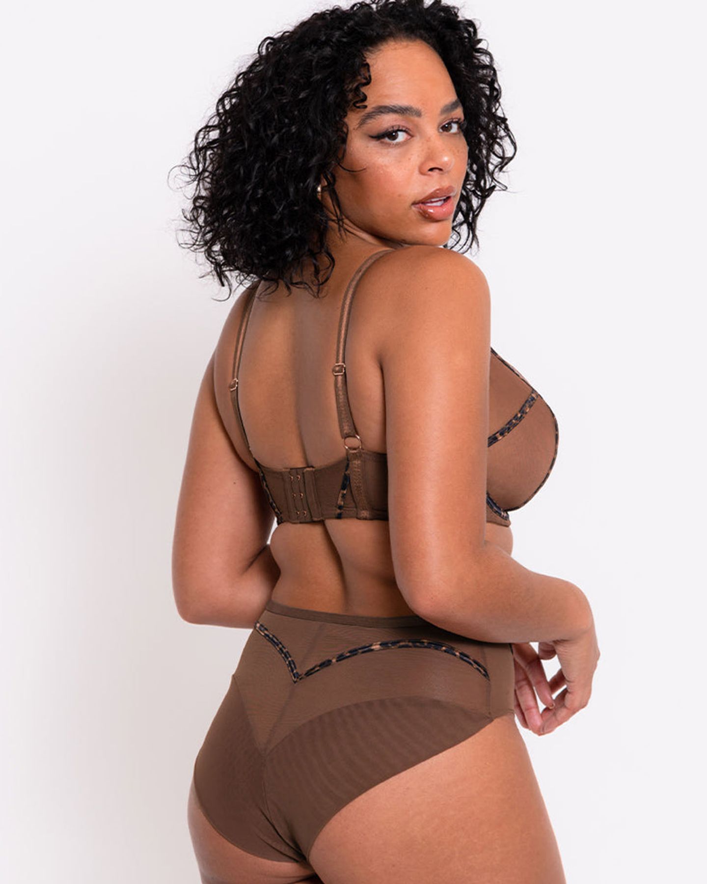 Бюстгальтер из коллекции Senses создан, чтобы пробуждать чувства и подчёркивать силуэт. Чашки выполнены из самой прозрачной корсетной сетки Curvy Kate, создающей эффект едва заметной вуали без ущерба для поддержки. Атласные швы в леопардовой расцветке изящно очерчивают грудь, а декоративные элементы в оттенке розового золота добавляют роскоши.