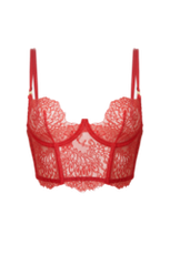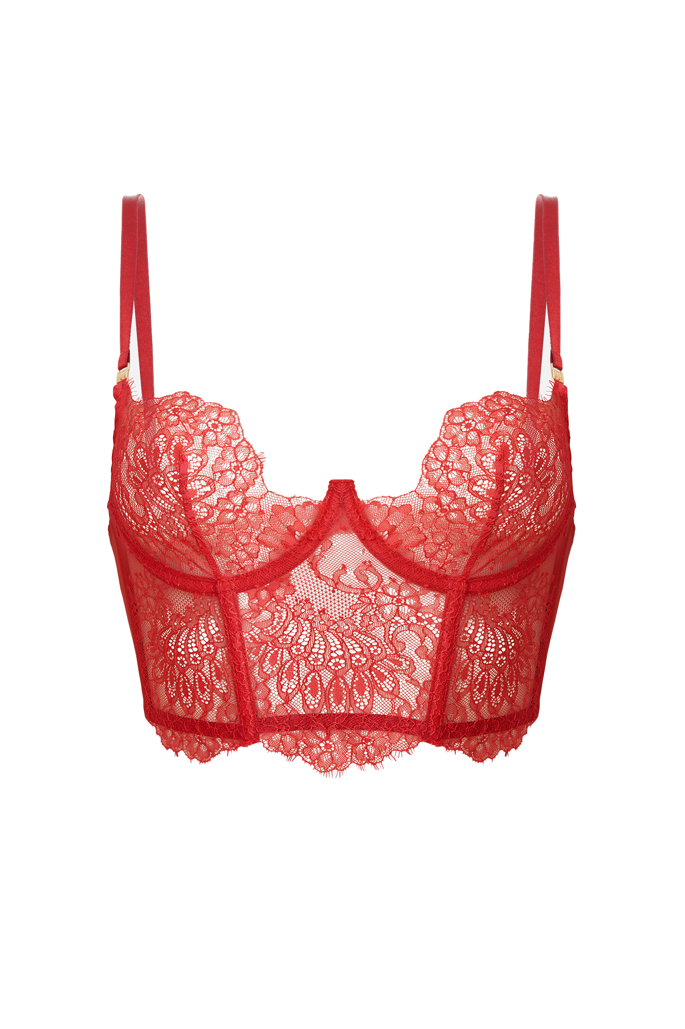 Бюстгальтер-бюстье Opium red — это комбинация корсета и бюстгальтера, созданная для тех, кто ценит женственность и уверенность. Полупрозрачное кружево шантильи и мягкая эластичная тюль формируют гармоничный силуэт и подчёркивают естественные линии тела.