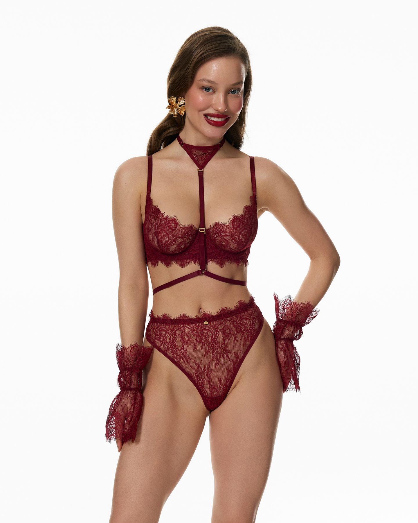 Чокер из коллекции Scandale Manière — это больше, чем аксессуар. Это акцент, который превращает образ в высказывание. Кружевной треугольник на шее выполнен из изысканного кружева Шантильи и дополнен регулируемыми ремешками, которые соединяются с эластичной линией под грудью. Лаконичная геометрия, смелое исполнение и провокационная эстетика делают этот чокер идеальным для стилизации с открытым бельём, платьем или поверх боди.