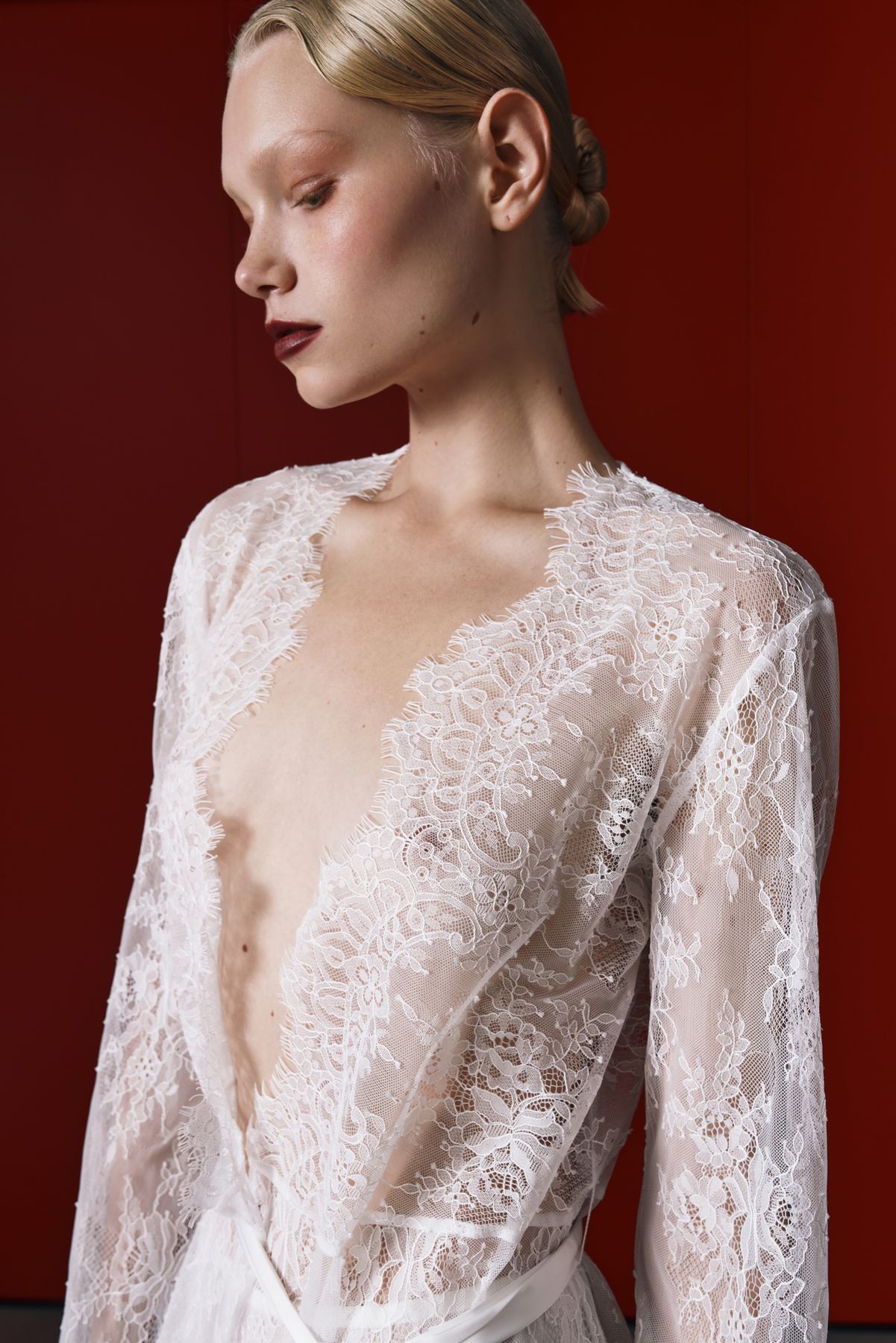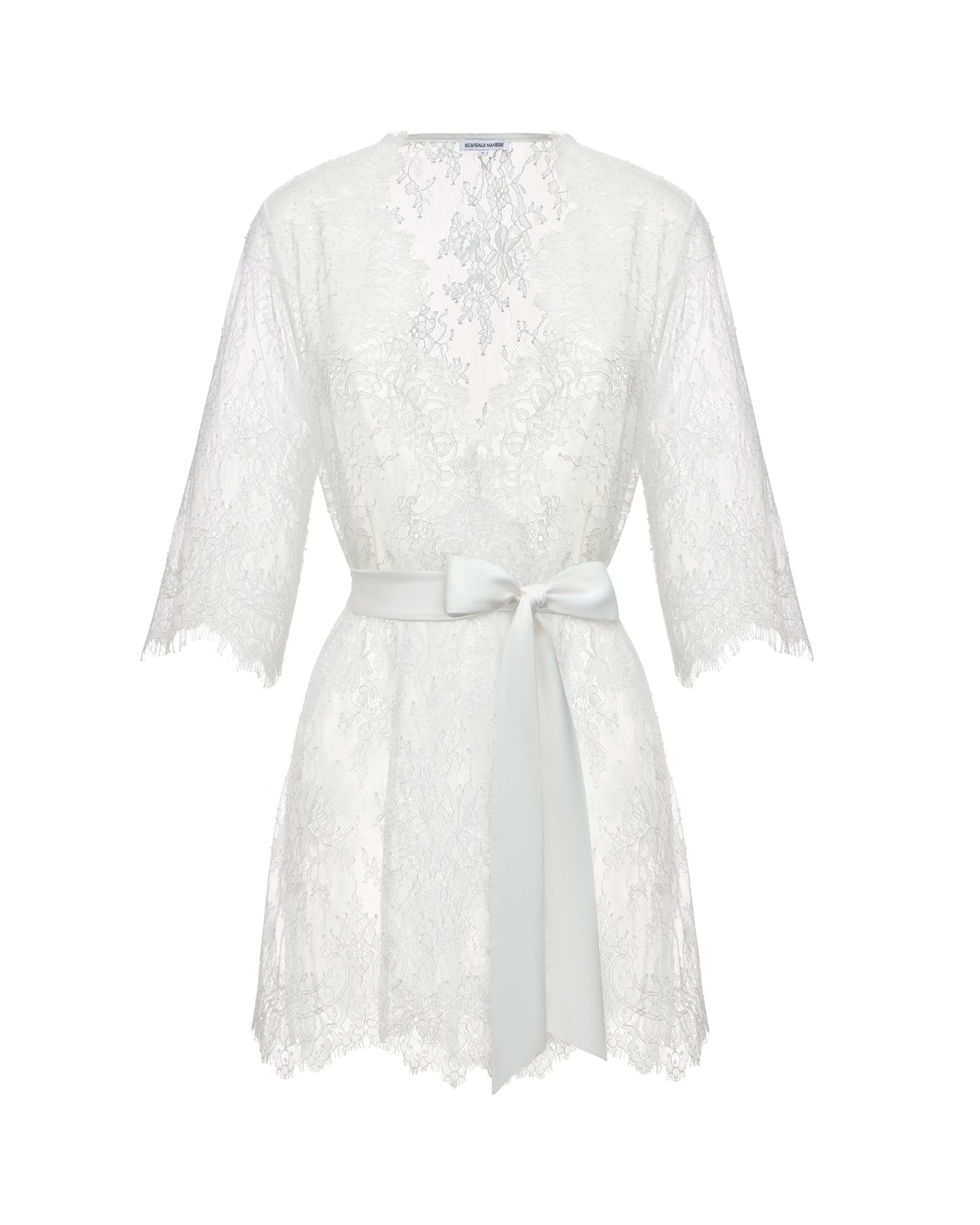 Халат Empress от Scandale Manière — будуарный образ с королевским настроением. Выполненный из тончайшего кружева, он подчёркивает изгибы тела, при этом оставаясь лёгким и воздушным. Укороченный крой, рукава ¾ и прозрачная структура ткани создают утончённый силуэт, в котором сочетаются чувственность и элегантность.