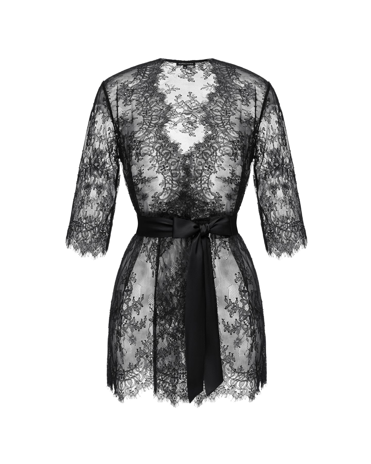Халат Empress от Scandale Manière — будуарный образ с королевским настроением. Выполненный из тончайшего кружева, он подчёркивает изгибы тела, при этом оставаясь лёгким и воздушным. Укороченный крой, рукава ¾ и прозрачная структура ткани создают утончённый силуэт, в котором сочетаются чувственность и элегантность.