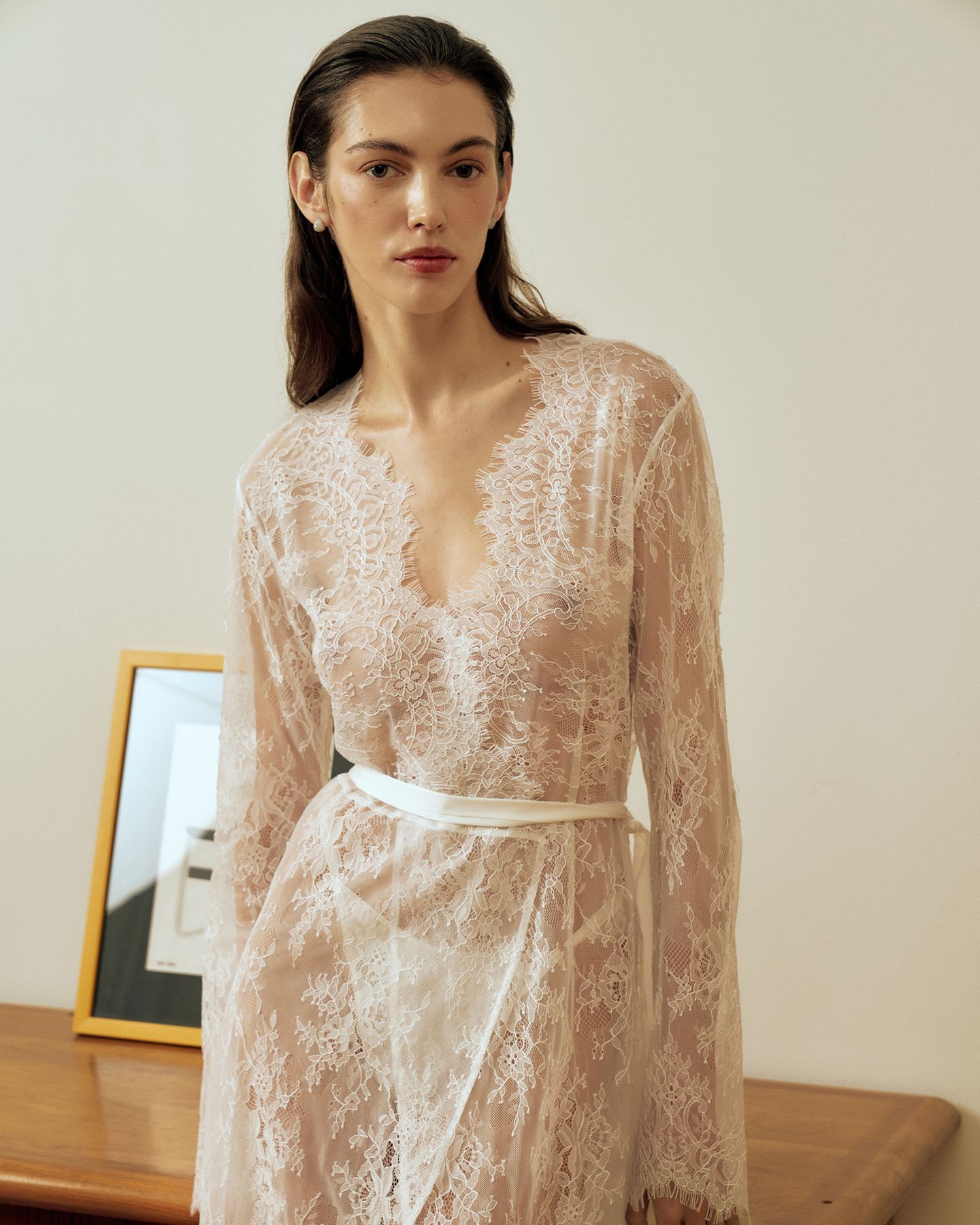 Халат Empress макси от Scandale Manière создан, чтобы впечатлять с первого взгляда. Выполненный из тонкого кружева с изящной отделкой по краю, он мягко струится по телу, подчёркивая изгибы и создавая эффект невесомости. Удлинённый крой и широкие рукава придают образу торжественность и театральную выразительность.