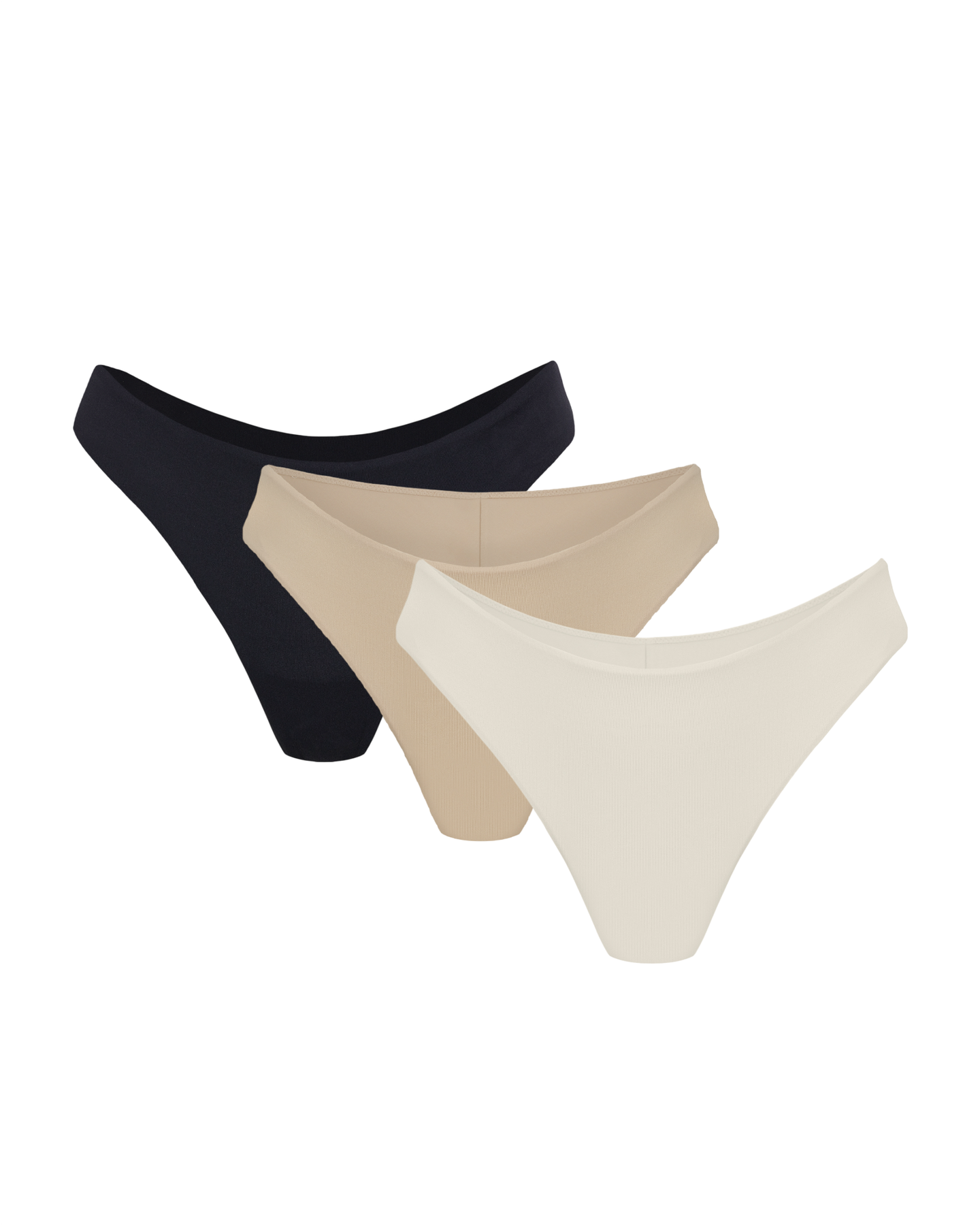Три оттенка — одна идеальная посадка. В комплекте три пары трусов-стринг: чёрные, бежевые и белые. Минималистичная форма без лишних деталей создаёт ощущение невидимости под одеждой и подчёркивает линию бёдер. Модель обеспечивает максимальный комфорт и свободу движений на каждый день.