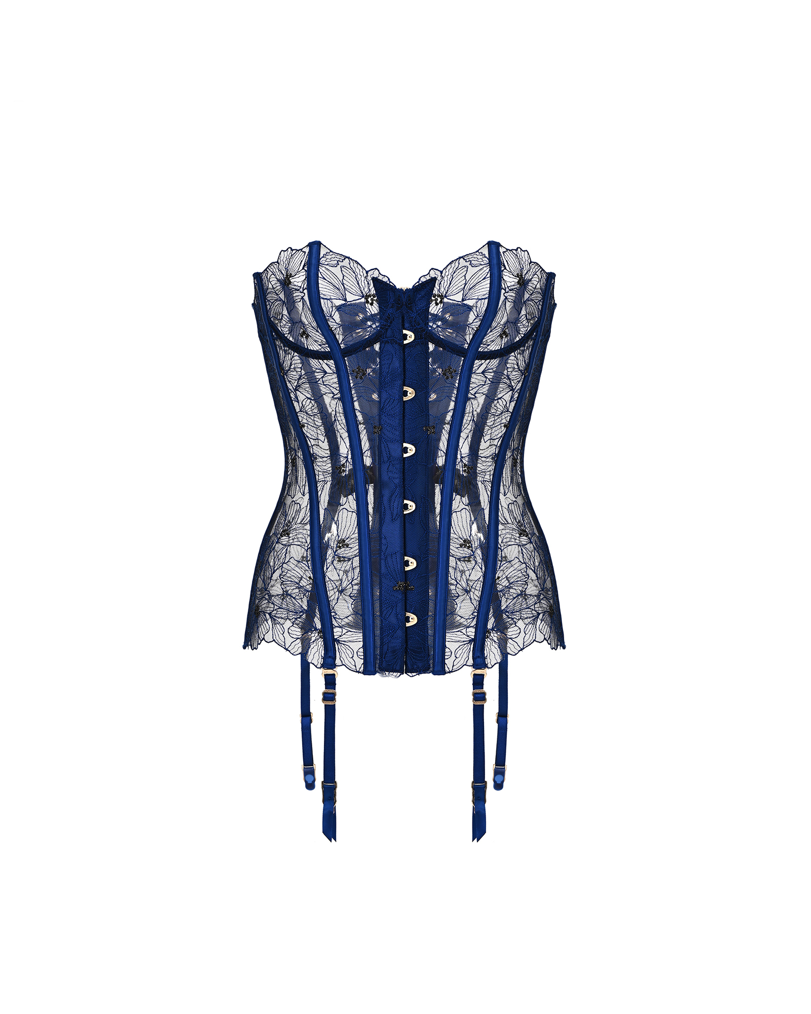 Корсет Lia — это чувственная интерпретация классического силуэта. Выполненный из цветочного ресничного кружева и гладкого атласа, он формирует утонченную линию талии и подчёркивает изгибы тела. Традиционная шнуровка на спине позволяет точно настроить посадку, а крючки спереди делают процесс застёгивания удобным и самостоятельным.