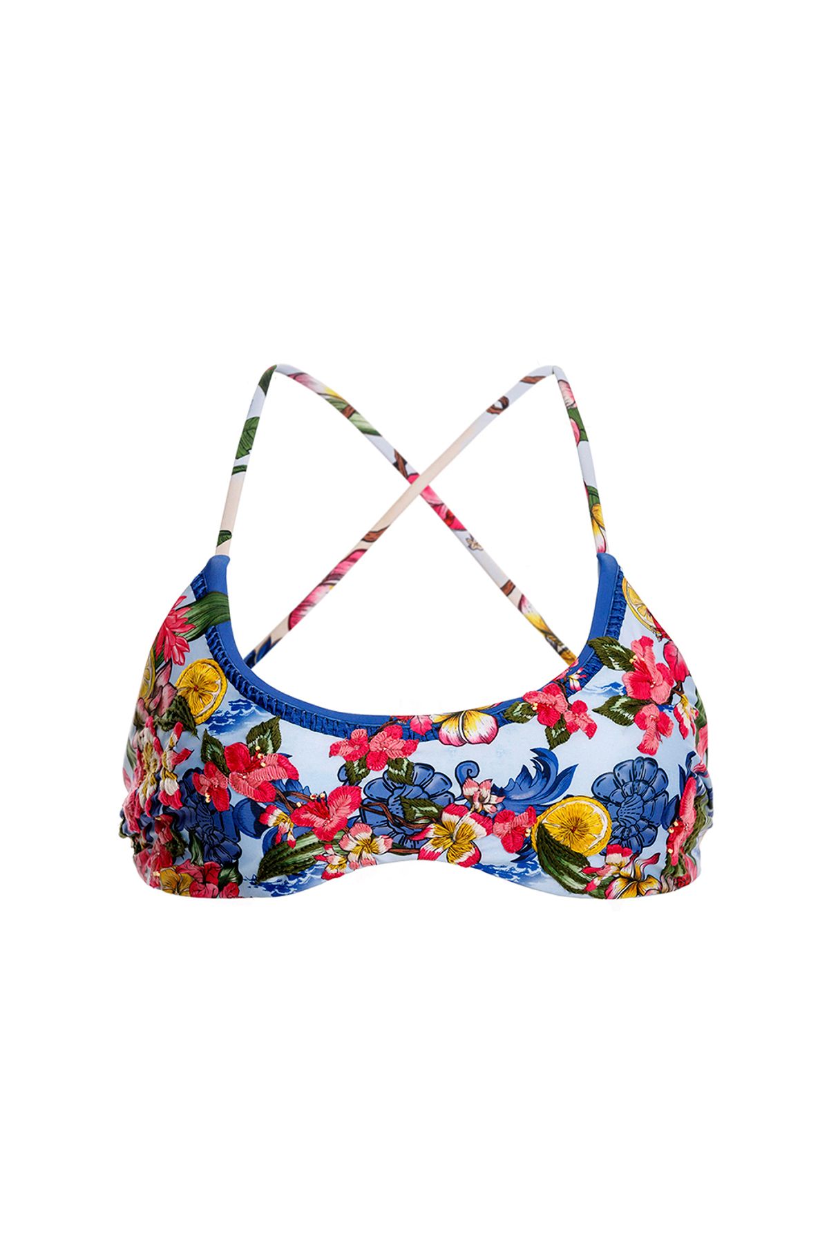 Выполненный из люксовой ткани с тактильным эффектом гладкого и лёгкого шелка, лиф комфортно прилегает к телу и быстро сохнет, сохраняя насыщенность оттенков даже после многочисленных носок. Тонкие завязки на спине позволяют отрегулировать посадку и красиво подчеркнуть зону декольте.