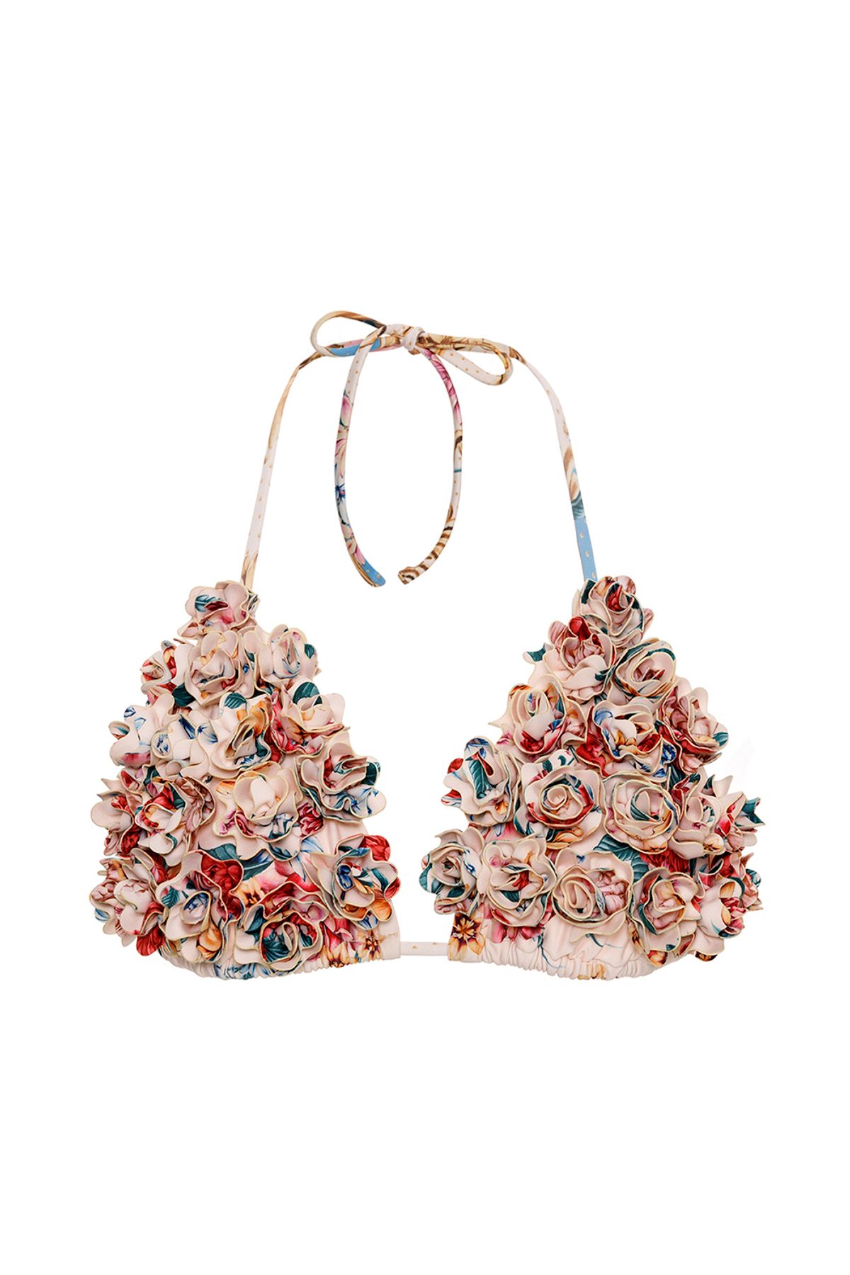 Лиф-бикини Lolita blush создан для тех, кто ценит красоту деталей и романтичный стиль. Модель с мягкими треугольными чашечками на завязках украшена объемной цветочной аппликацией, создавая выразительный, женственный образ и подчёркивая Вашу индивидуальность.