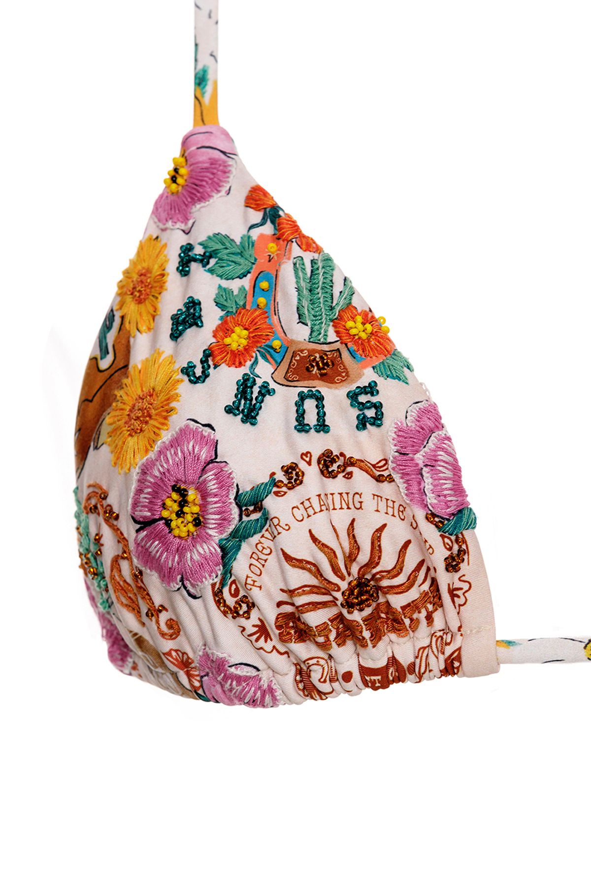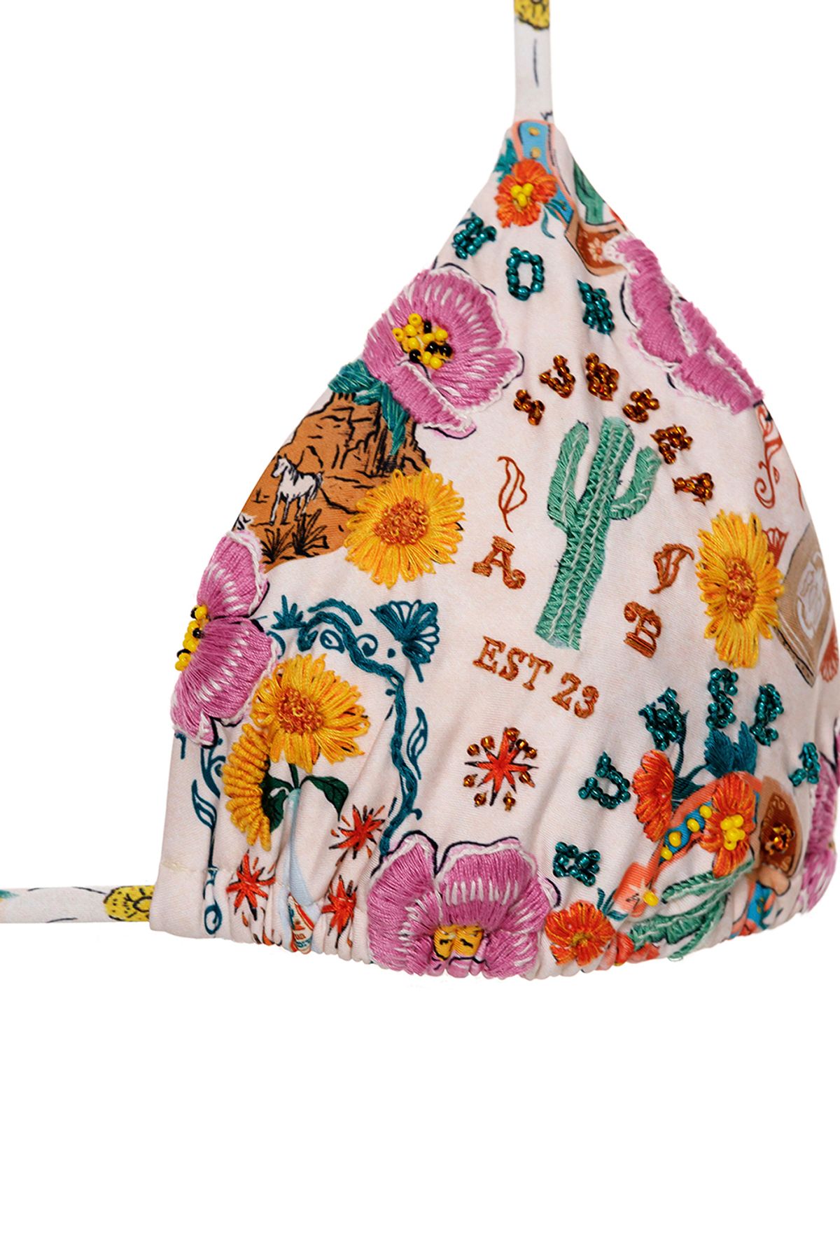 Лиф Lolita nopal с треугольными чашечками — это воплощение женственности, игривости и винтажного настроения. Модель украшена яркими деталями ручной работы, которые придают образу индивидуальность и подчёркивают его уникальный характер.