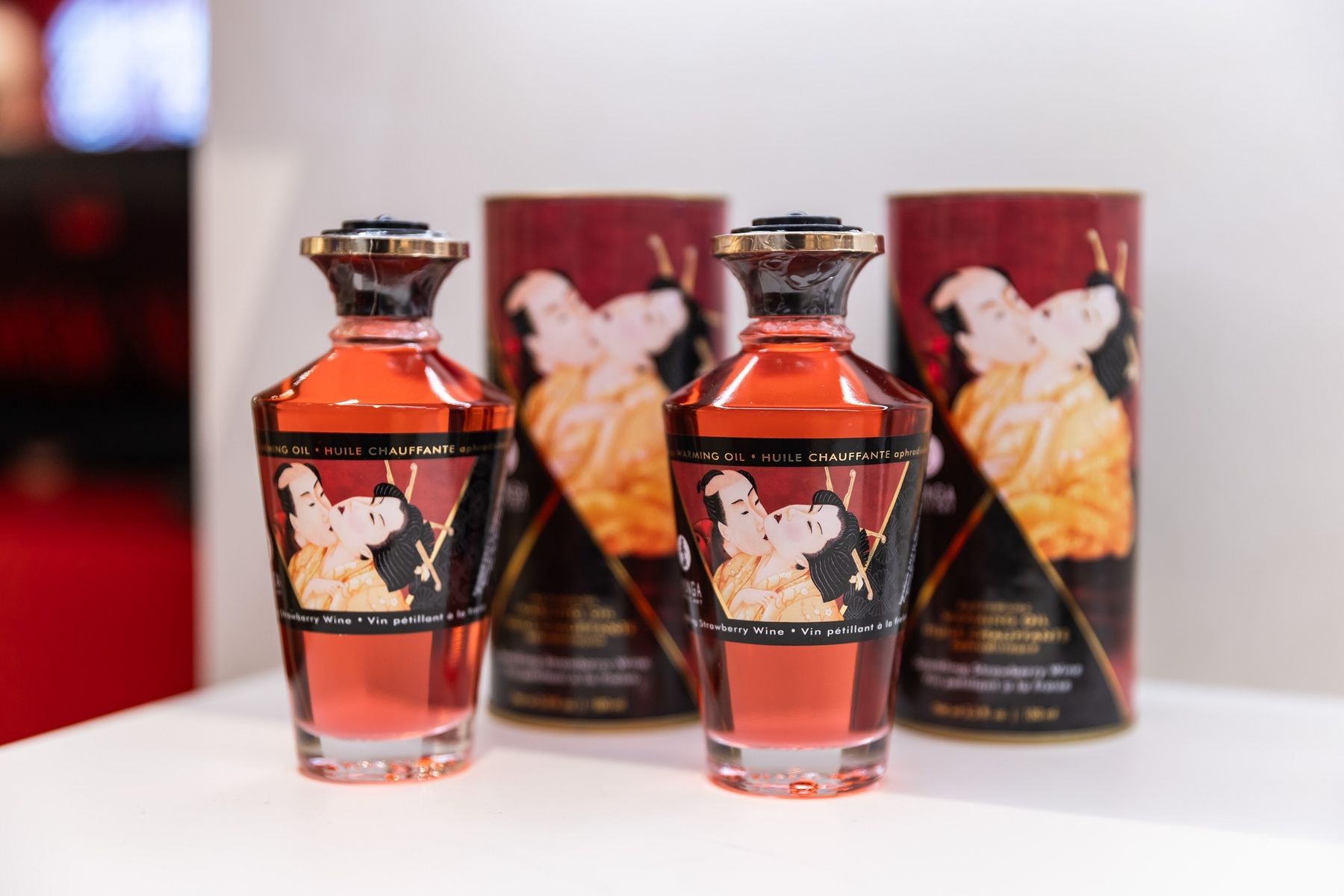 Разогревающее и съедобное масло для тела с натуральными вкусом Игристое клубничное вино Shunga Afrodisiac Warming Oil.