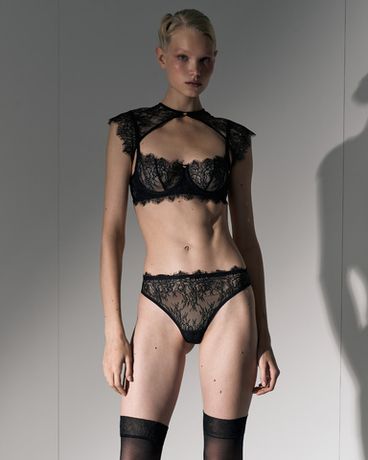 Накидка из коллекции Scandale Manière создана для тех, кто ценит детали. Выполненная из тончайшего кружева Шантильи, она элегантно обрамляет линию плеч, превращая любой комплект в соблазнительный ритуал. Изделие фиксируется на шее миниатюрной застёжкой, а эластичные петли надёжно удерживают конструкцию на теле, не сковывая движения.