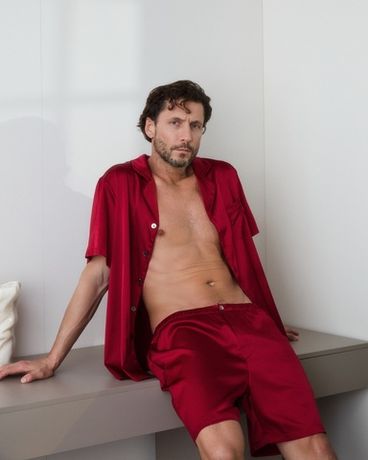 Мужская пижама из натурального шёлка — это история про стиль даже в отдыхе. Лаконичный силуэт с отложным воротником, коротким рукавом и шортами до середины бедра подкупает простотой, за которой — абсолютное качество.