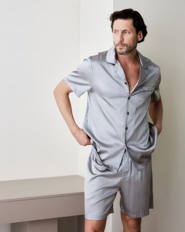 Мужская пижама из натурального шёлка — это история про стиль даже в отдыхе. Лаконичный силуэт с отложным воротником, коротким рукавом и шортами до середины бедра подкупает простотой, за которой — абсолютное качество.