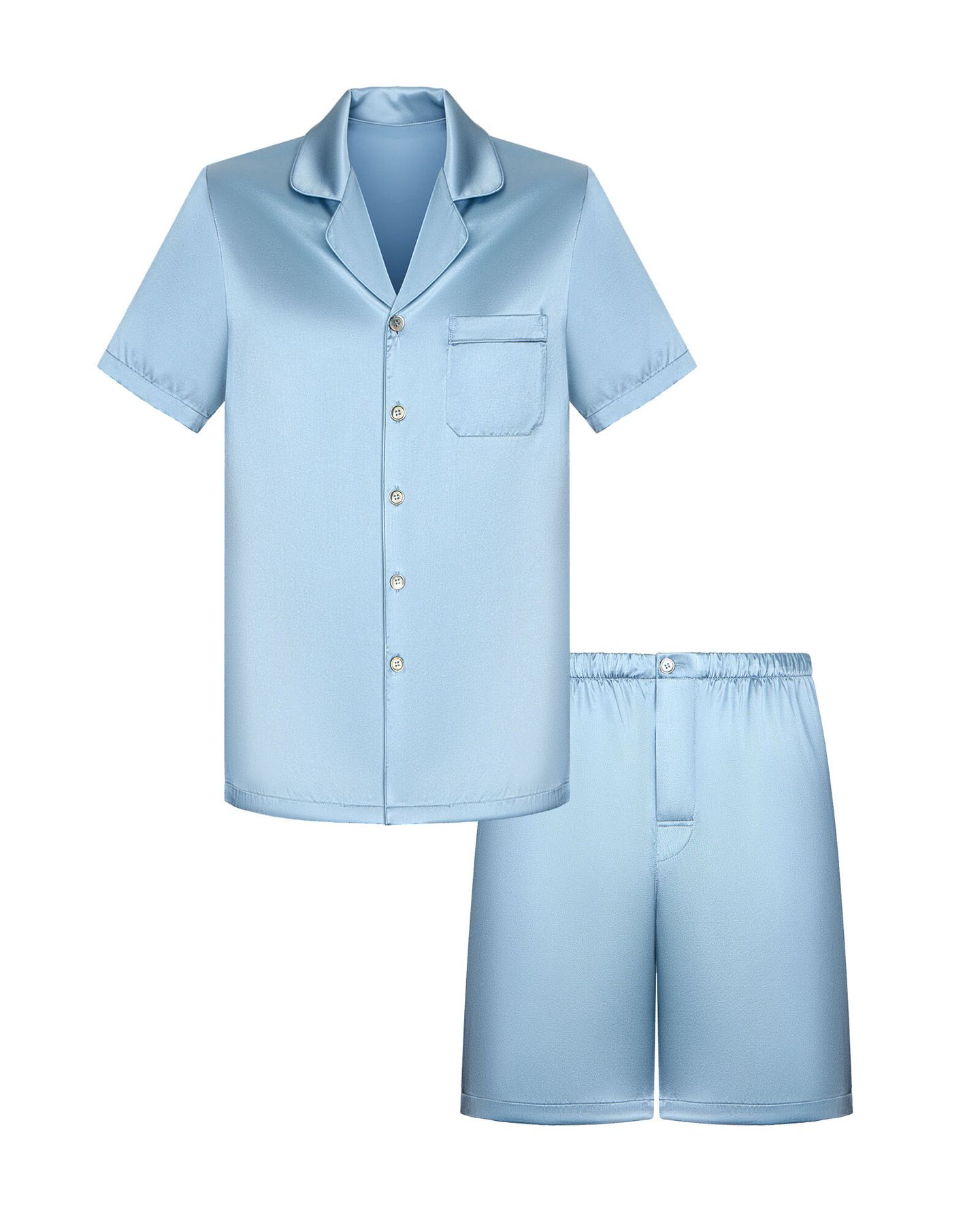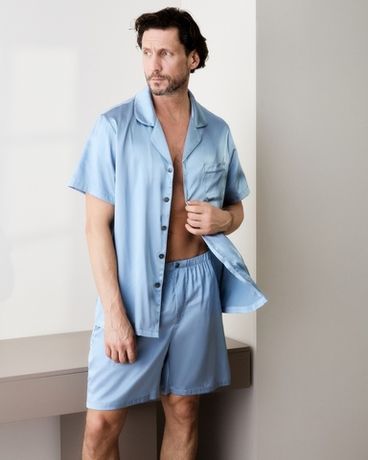 Мужская пижама из натурального шёлка — это история про стиль даже в отдыхе. Лаконичный силуэт с отложным воротником, коротким рукавом и шортами до середины бедра подкупает простотой, за которой — абсолютное качество.