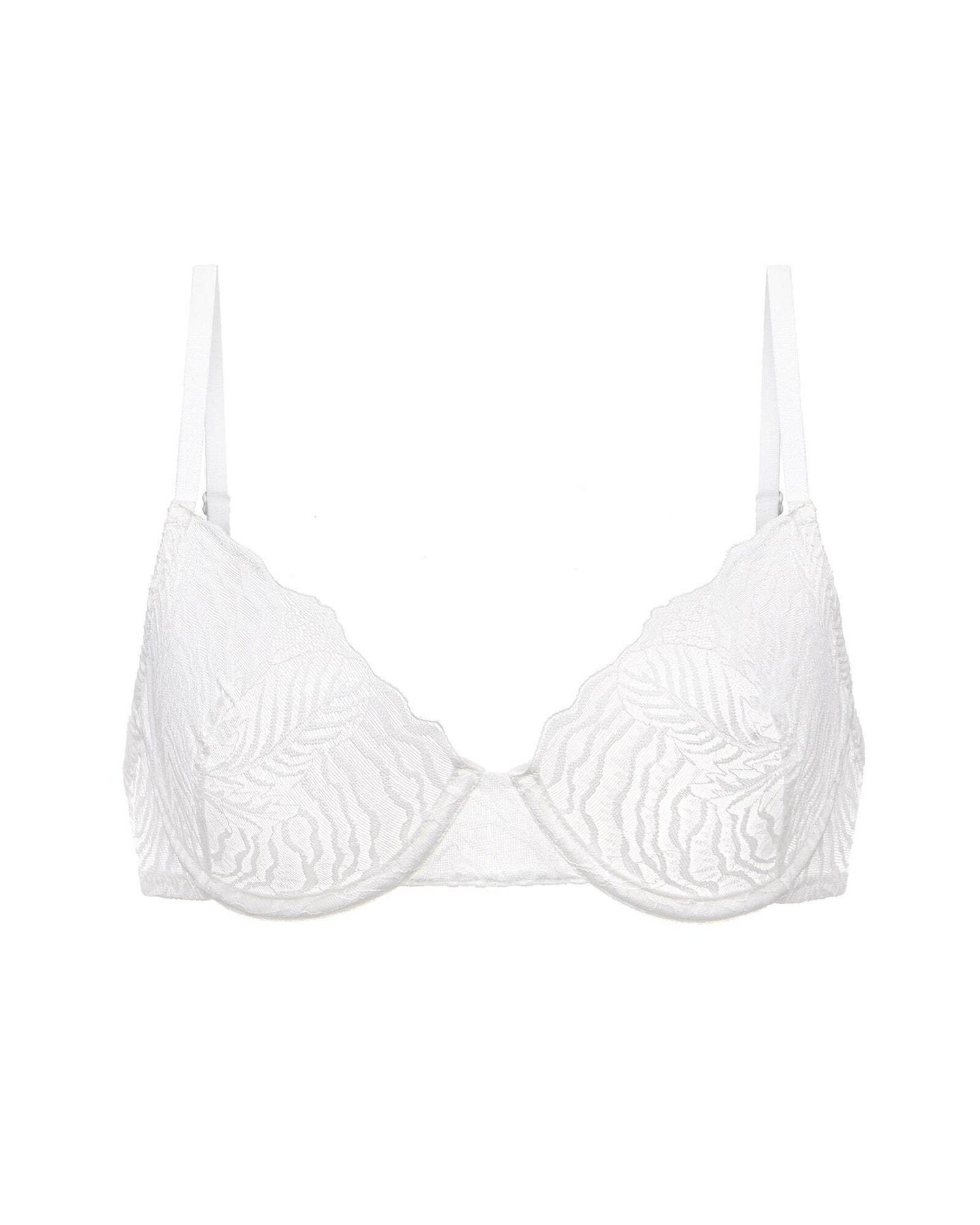 Мягкие чашки с наклонной вытачкой, начинающейся от боковой детали, формируют естественный объём и направляют грудь вверх и к центру. Средней глубины каркас усиливает поддержку, подчёркивая при этом глубокий V-образный вырез.