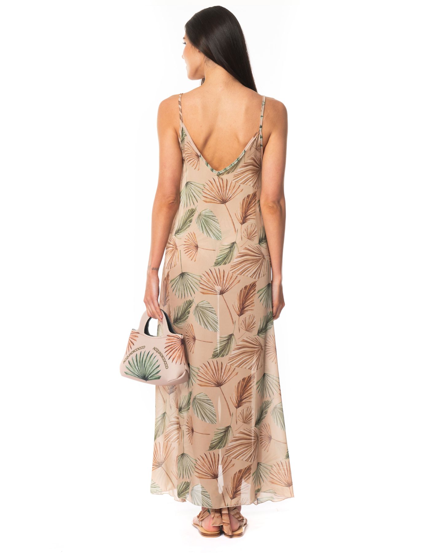 Длинное платье Elegance от Acquadicocco — эффектная завершённость образа. Полупрозрачная ткань с тропическим принтом струится по телу, создавая ощущение лёгкости и свободы. Пастельная палитра и динамика листьев в рисунке подчёркивают расслабленную эстетику отдыха.