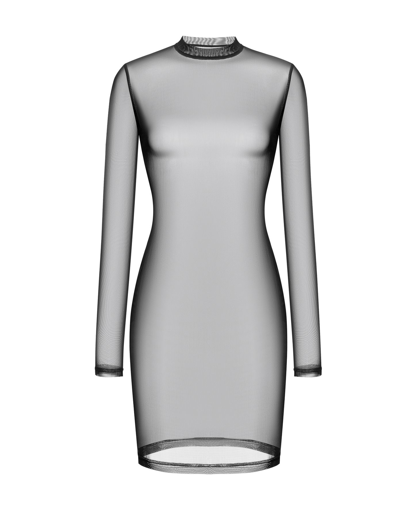 Платье из коллекции Seductive ghost от Scandale Manière — это воплощение смелости в минимализме. Облегающая форма из тончайшей эластичной сетки подчёркивает изгибы тела и создаёт визуальный эффект «второй кожи». Высокая горловина и длинные рукава уравновешивают откровенность полупрозрачной ткани, формируя соблазнительный, но утончённый образ.