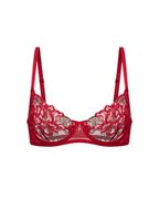 Пояс для чулок Passion — продолжение алхимии огня и кружева, где каждый элемент будто вырезан из пламени. Объёмные пионы цвета спелого граната, вышитые на эластичной сетке алого оттенка, создают эффект живого цветка, готового дрогнуть при движении. Лепестки выполнены из нитей кроваво-красного, гранатового и алого цветов, а листочки приподняты тонкой сетчатой лентой, формируя иллюзию рельефа и глубины. Геометрия силуэта с треугольными линиями подчёркивает талию и визуально вытягивает силуэт. Пояс становится не просто дополнением, а кульминацией композиции Passion — соблазнительной и графичной.