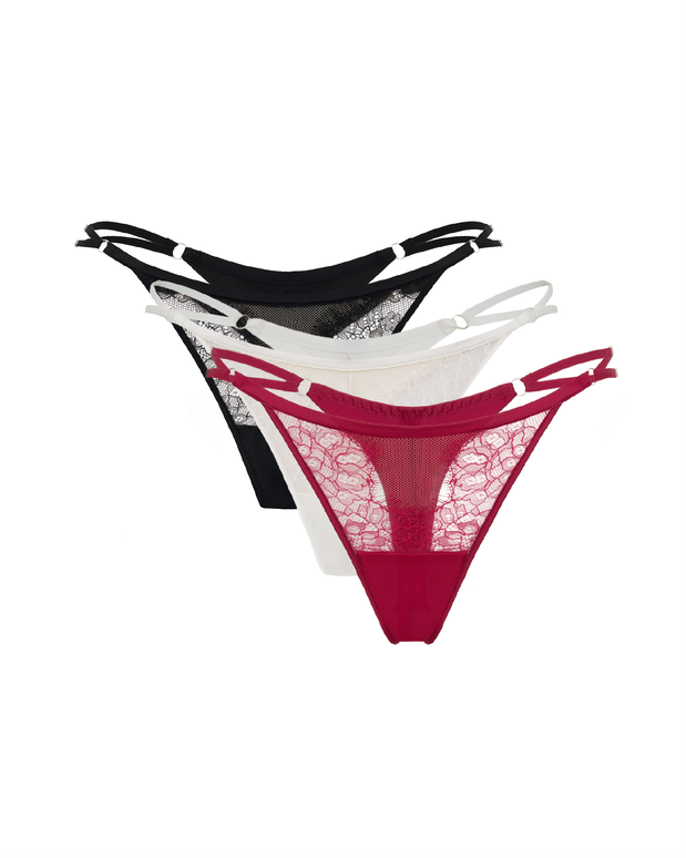 Комплект трусов Royal set — это изысканное бельё из натурального шёлка с кружевными вставками, представленное сразу в трёх оттенках: чёрном, бордовом и молочном. Каждый цвет несёт свою символику — от уверенности до чувственности и чистоты, позволяя подобрать настроение под любой образ.