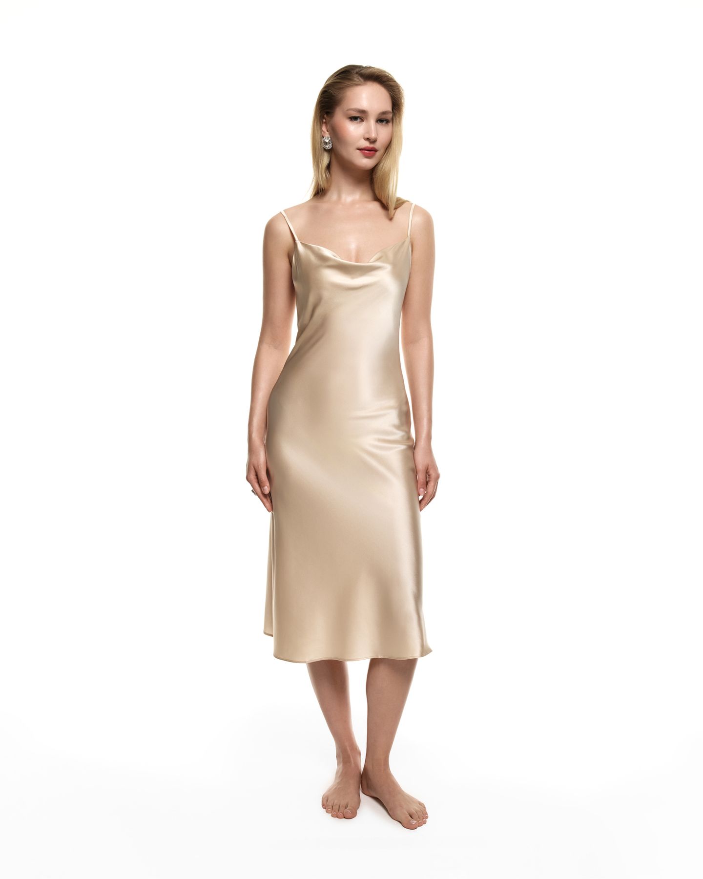 Сорочка-макси Leya от Scandale Manière создана для того, чтобы раскрыть вашу внутреннюю грацию. Натуральный шелк струится по телу, мягко повторяя его линии и создавая ощущение абсолютной лёгкости. Лаконичное декольте подчёркивает изгибы.