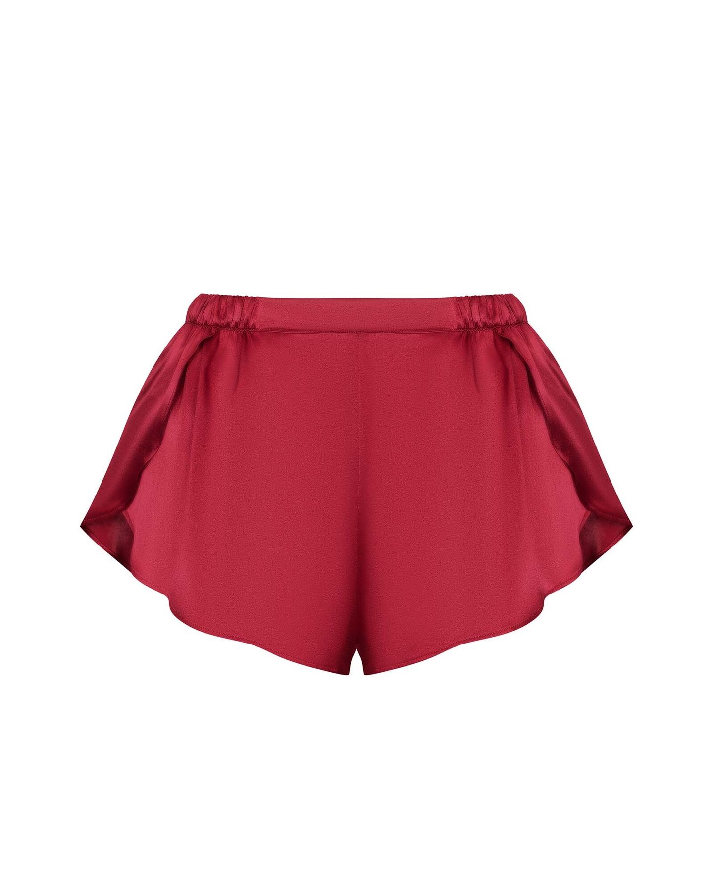 Шорты Leya от Scandale Manière — это соблазнительное сочетание комфорта и игривого силуэта. Натуральный шелк нежно скользит по коже, а высокие боковые разрезы от линии пояса добавляют движения и откровенности образу. Высокая посадка акцентирует талию и визуально вытягивает ноги.