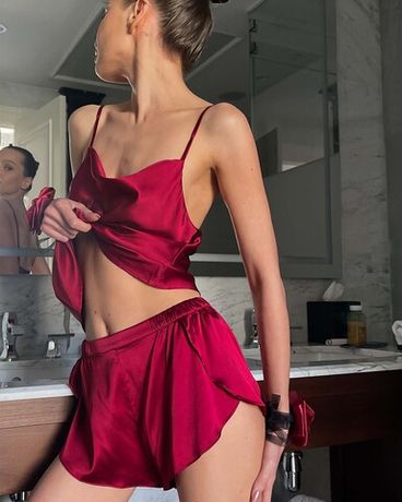 На Элли топ Leya из натурального шелка размер М, шорты Leya из натурального шелка размер М