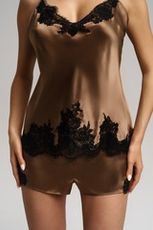 Пижамный комплект из премиального шёлка с элегантным кружевным узором. Исключительный цвет капучино с благородным блеском притягивает взгляды самых искушенных. Чувственный и изысканный образ окутает Вас неповторимой элегантностью.