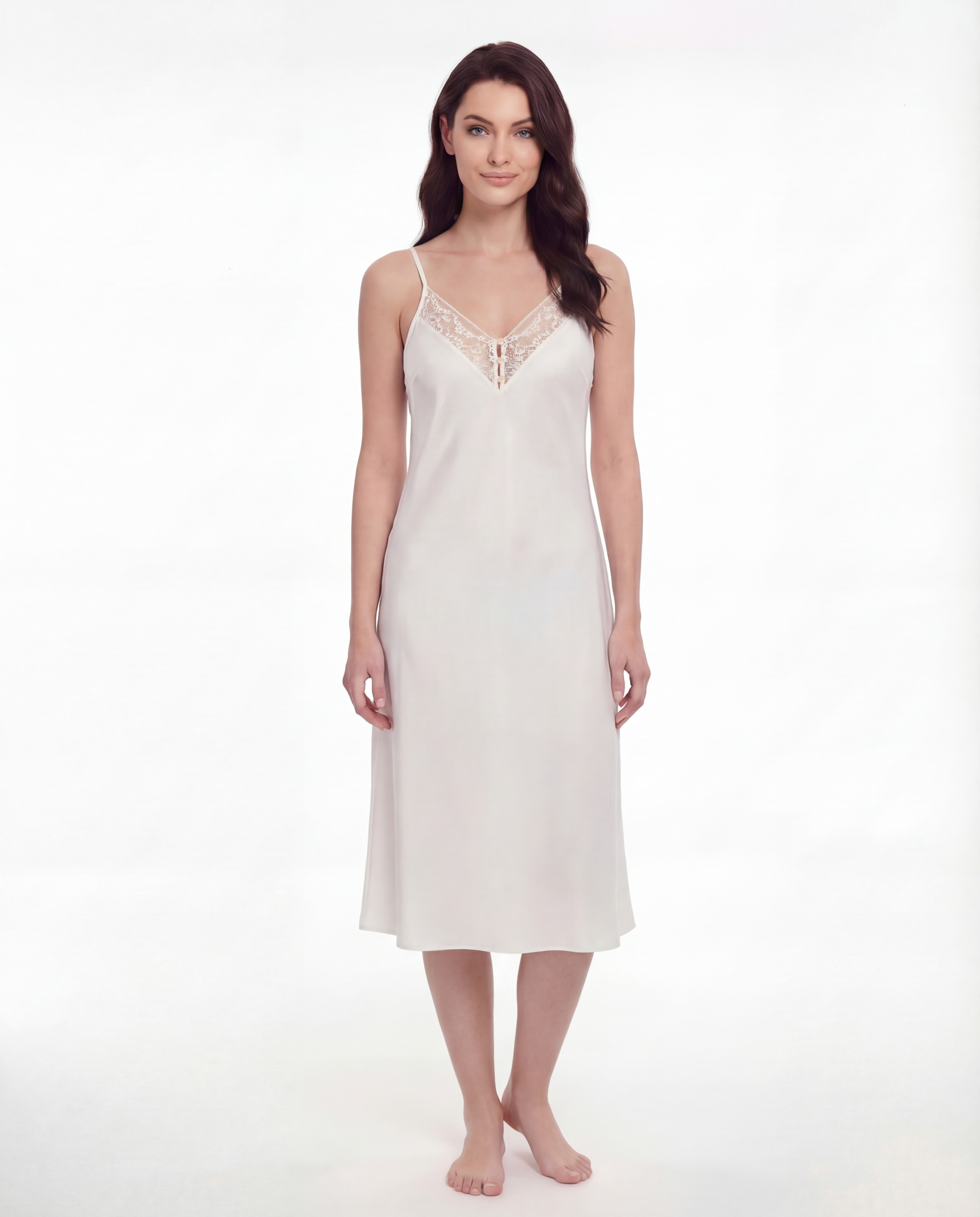 Сорочка Gaby с кружевом — выбор женщины, которая не ждёт случая, чтобы быть восхитительной. Лёгкий искусственный шёлк мягко струится по телу, подчеркивая силуэт, а глубокий V-вырез с кружевной вставкой создаёт акцент на линии декольте. Изящные бретели регулируются по длине, обеспечивая идеальную посадку. На груди — три изысканные пуговицы цвета «розовое золото», которые отсылают к мотивам винтажной роскоши, знакомой по утренним сценам в голливудских сериалах.