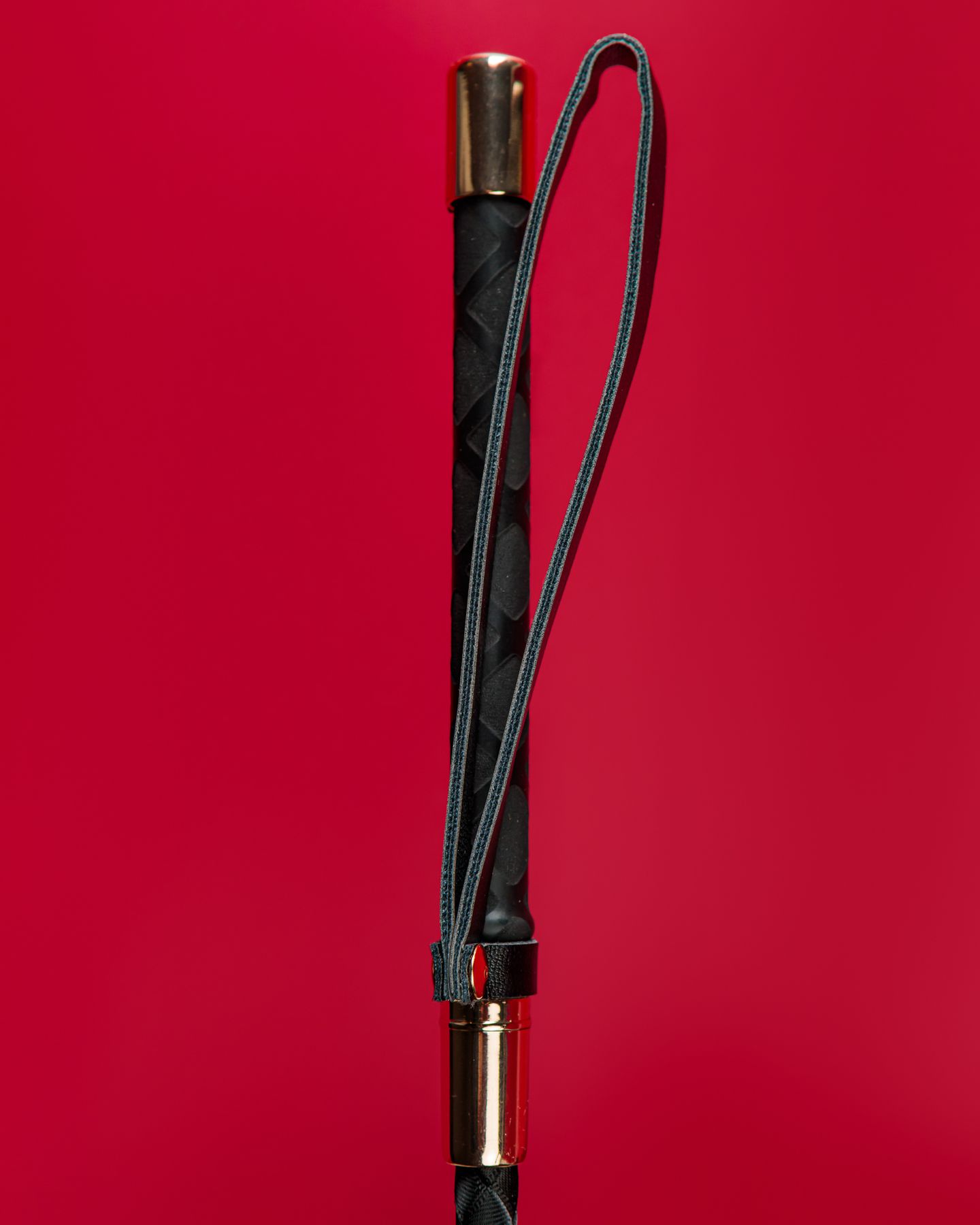 Стек Back to black — аксессуар с характером, созданный для тех, кто ценит красоту подчинения. Лёгкий, точный и выразительный, он подчеркивает власть жеста и эстетику ролевой игры. Эргономичная ручка обёрнута натуральной кожей и дополнена петлёй для запястья, а металлические детали цвета золота придают изделию соблазнительный акцент.