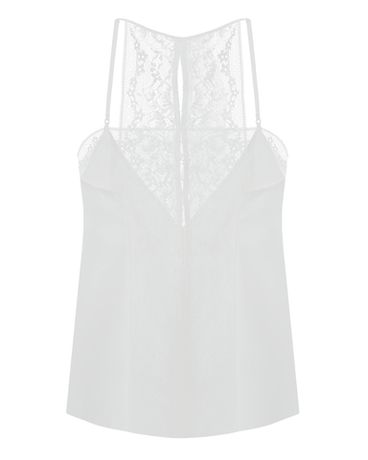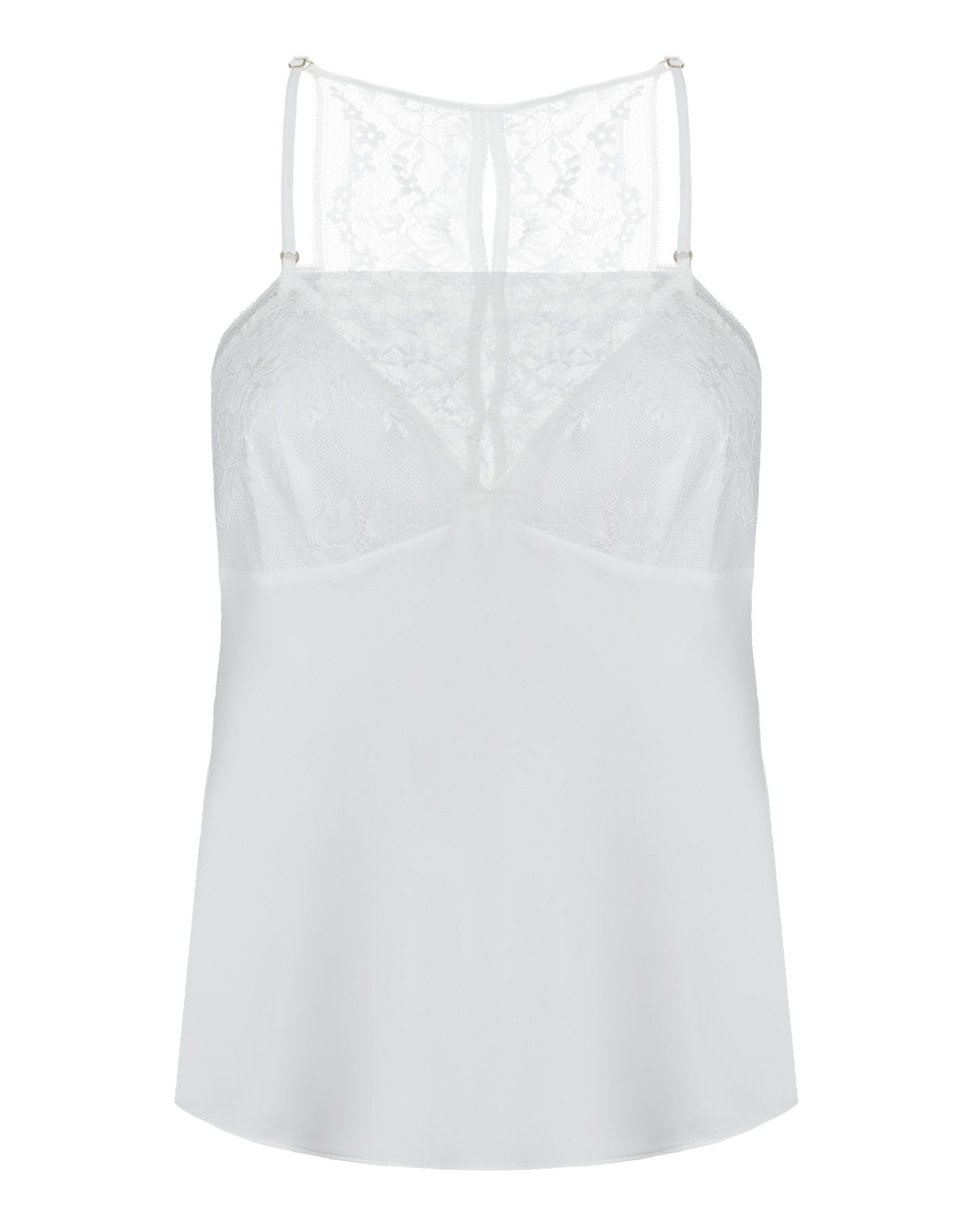 Контраст фактур делает модель выразительной: гладкая ткань обтекает силуэт, а кружево добавляет настроение. Этот топ легко вписывается в повседневный гардероб — как дома, так и за его пределами.
