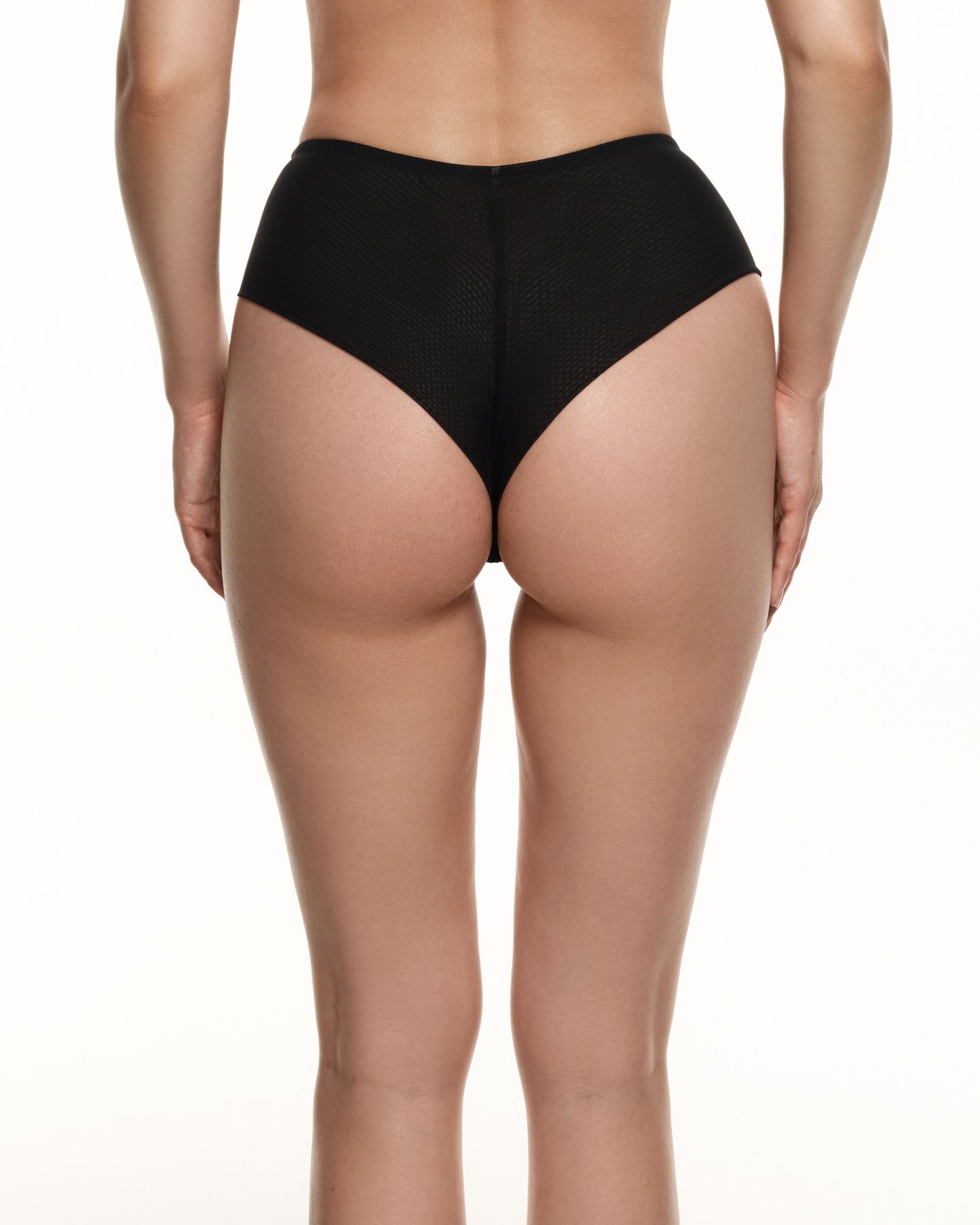 Особое внимание уделено задней части: двойной слой сетки без швов и обработки по краям плотно, но деликатно прилегает к ягодицам, не перетягивая кожу и оставаясь абсолютно незаметным под одеждой. Такая конструкция обеспечивает полную свободу движений и делает трусы идеальными для повседневной носки.