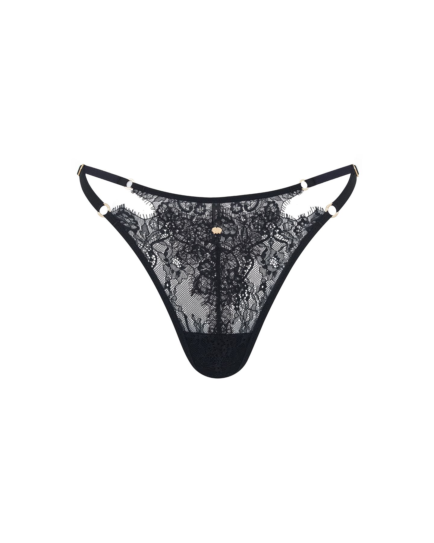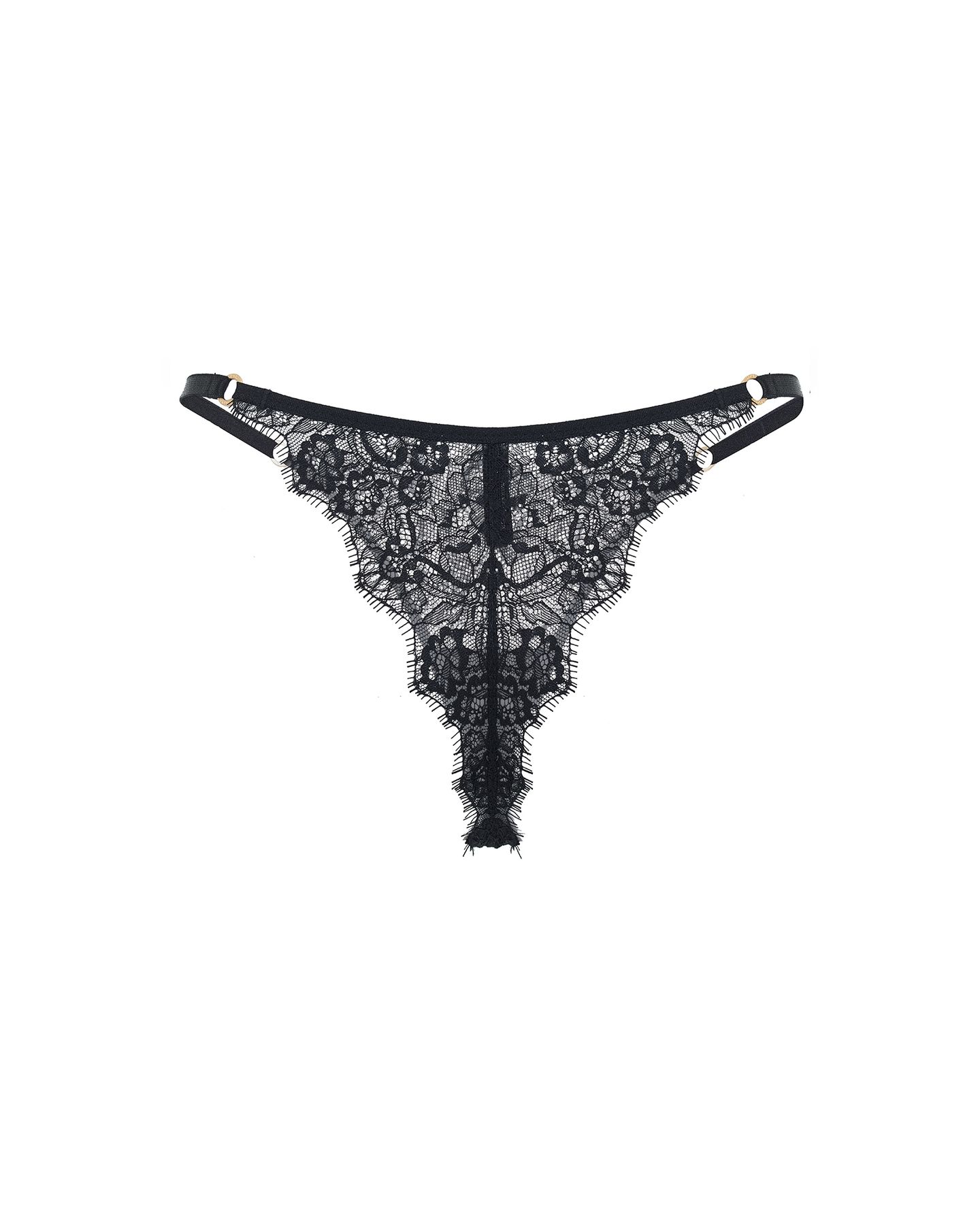 Трусы бразилиана из кружева Шантильи на регулируемых бретелях — воплощение чувственного дизайна и тонкой работы. Полностью выполнены из тончайшего кружева с цветочным узором и изящной отделкой по краю. Регулируемые боковые ленты позволяют адаптировать посадку под индивидуальные параметры. Задняя часть модели визуально удлиняет ноги и подчёркивает изгибы. В центре передней панели — вручную пришитый символ орхидеи Scandale Manière: знак утончённой дерзости и силы женственности.