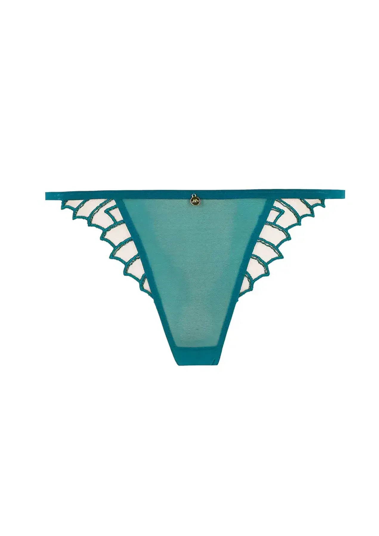 Миниатюрная золотая деталь спереди придаёт изделию завершённость, а эластичная структура обеспечивает комфорт и точную посадку. Модель легко сочетать с бюстгальтером и поясом в том же стиле, создавая гармоничный комплект.