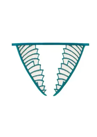 Трусы-брифы с доступом в изумрудном оттенке созданы для смелых и лёгких образов. Прозрачная сетка подчёркнута вышивкой в виде графичных линий, которые визуально вытягивают силуэт и акцентируют изгибы тела.