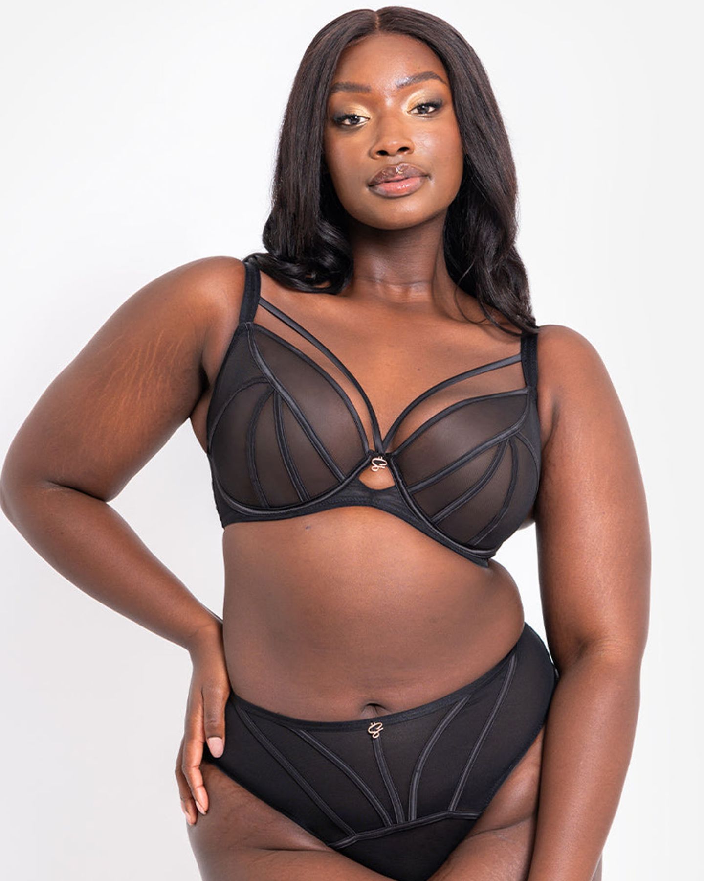 Трусы из коллекции Senses в классическом чёрном цвете — это сочетание минимализма и соблазнительности. Полупрозрачная корсетная сетка подчёркивает изгибы тела, а изогнутые атласные швы визуально вытягивают силуэт.