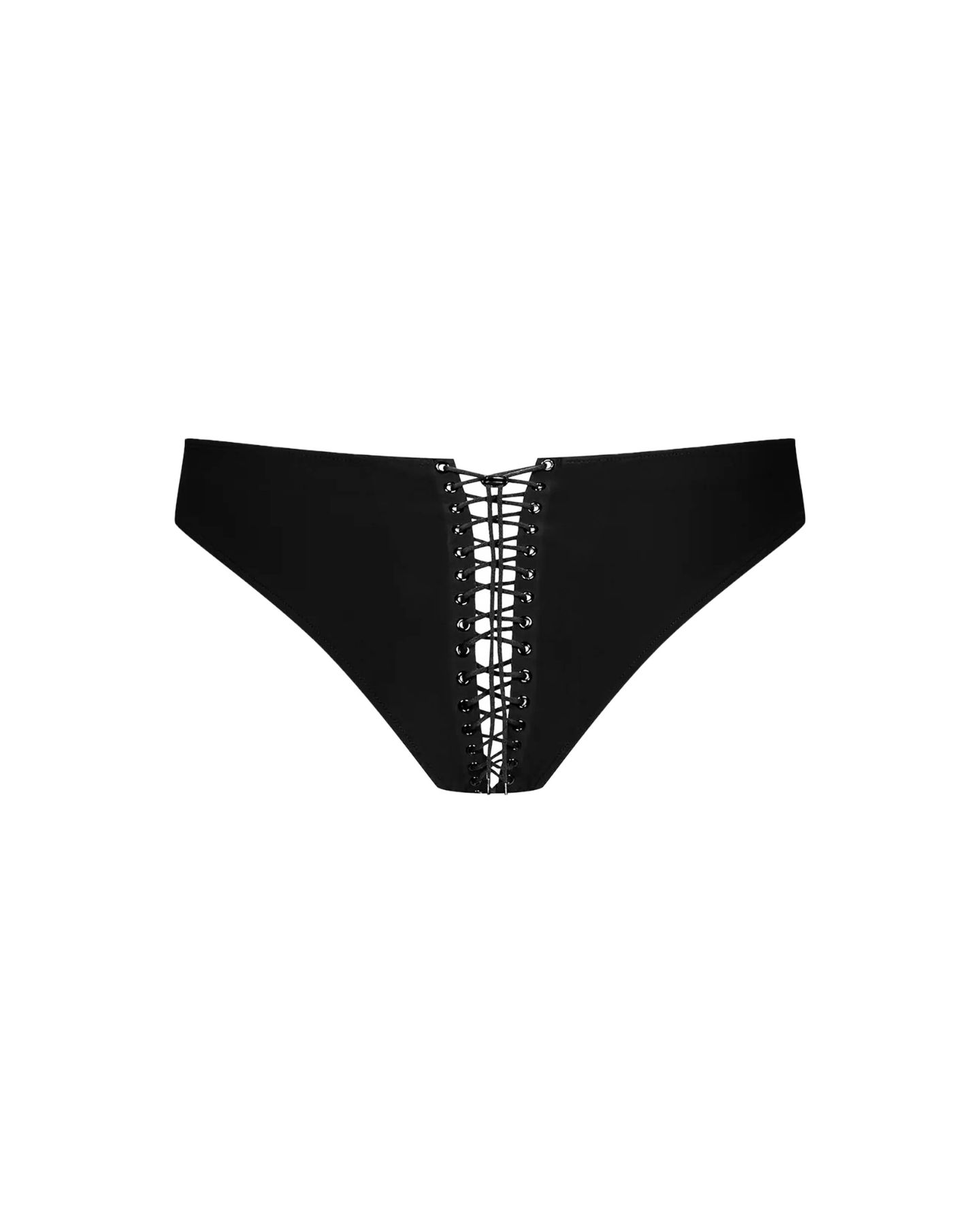 Трусы-бразильяна бренда Maison Close из гладкой микрофибры создают смелый акцент благодаря шнуровке на спинке. Минималистичный перед дополняется эффектной деталью сзади, подчёркивающей изгибы и добавляющей образу дерзости.