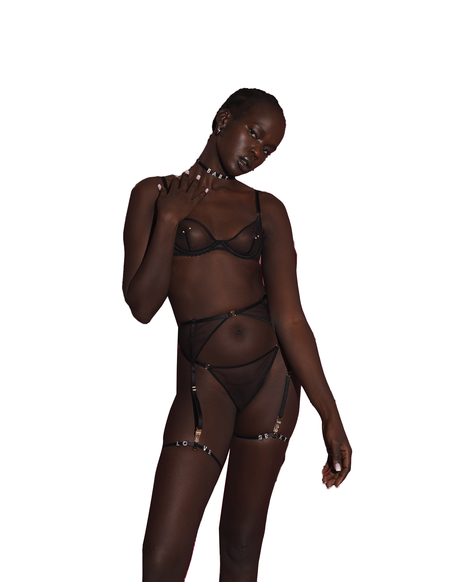 Трусы стринги Glow — завершающий штрих дерзкого образа. Полупрозрачная бельевая сетка создаёт эффект обнажённого тела, а лаконичные линии подчёркивают силуэт. Миниатюрные золотистые кольца добавляют блеск и акцентируют внимание на деталях.