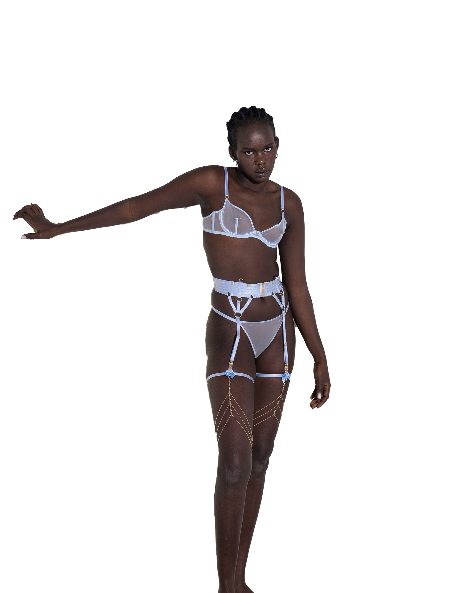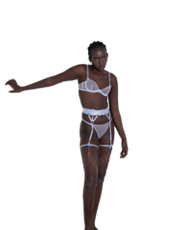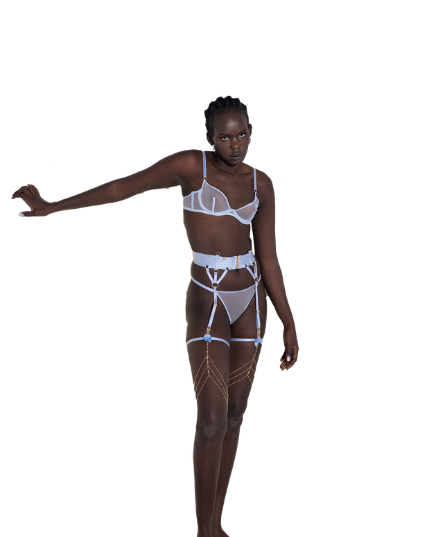 Трусы-стринги Glow — завершающий штрих дерзкого образа. Полупрозрачная бельевая сетка создаёт эффект обнажённого тела, а лаконичные линии подчёркивают силуэт. Миниатюрные золотистые кольца добавляют блеск и акцентируют внимание на деталях.