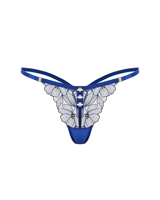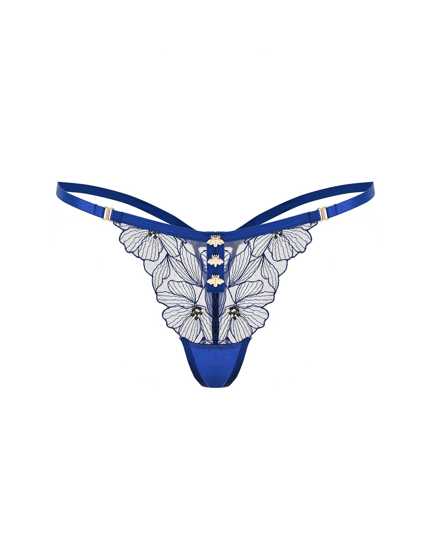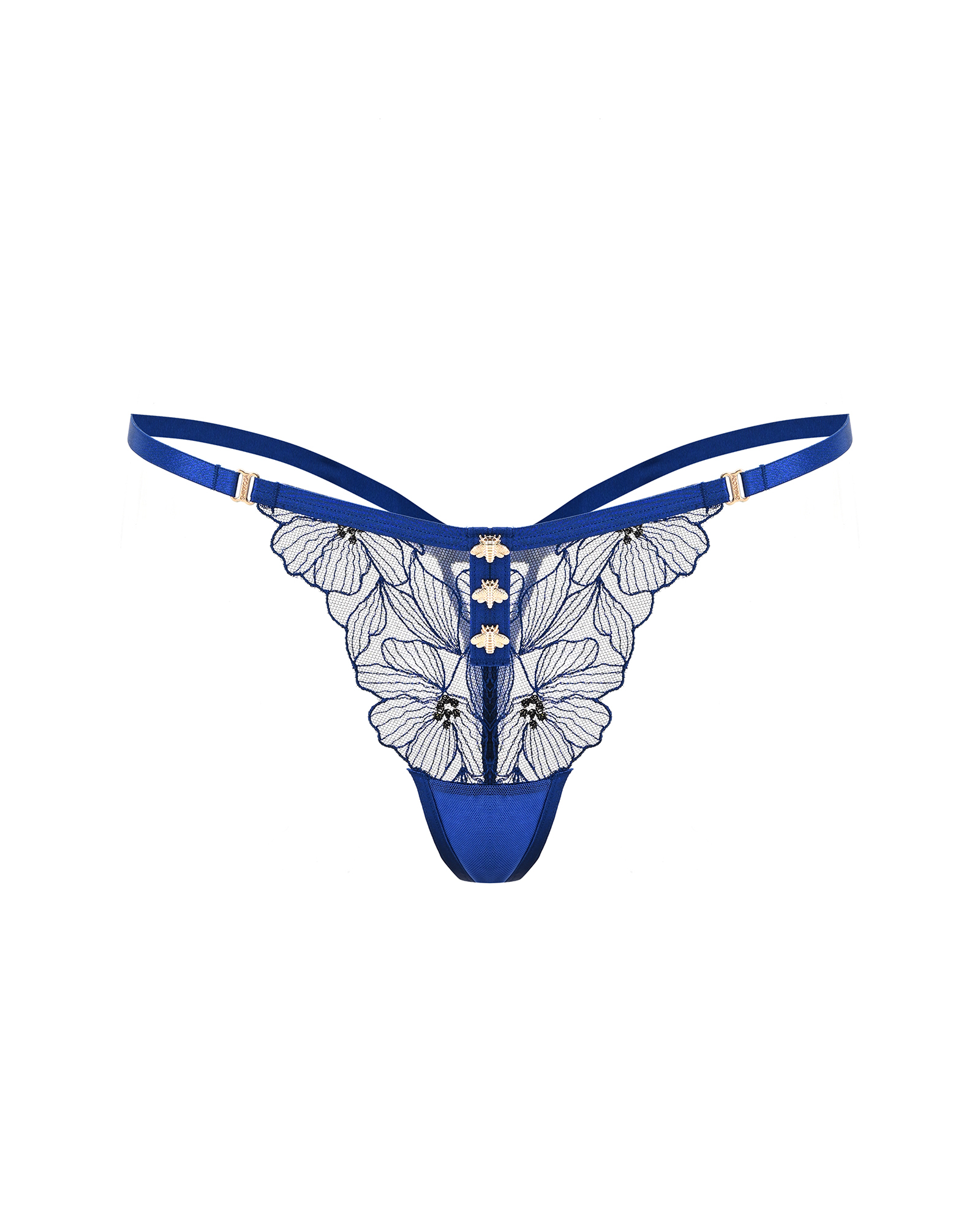 Регулируемые стрепы обеспечивают точную посадку, а миниатюрные пчёлки из фурнитуры добавляют изделию индивидуальности. Мини-стринги идеально сочетаются с поясом и бюстгальтером из той же коллекции, но могут быть самостоятельным акцентом в комплекте нижнего белья.