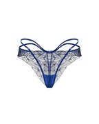 Мини-стринги выполнены из тонкой вышивки с добавлением золотой нити, которая подчеркивает линии тела и создает выразительный визуальный рельеф. Модель разработана для тех, кто ценит лёгкость, открытость и точность линий. Треугольный вырез на спинке делает посадку особенно изящной, акцентируя внимание на изгибах.