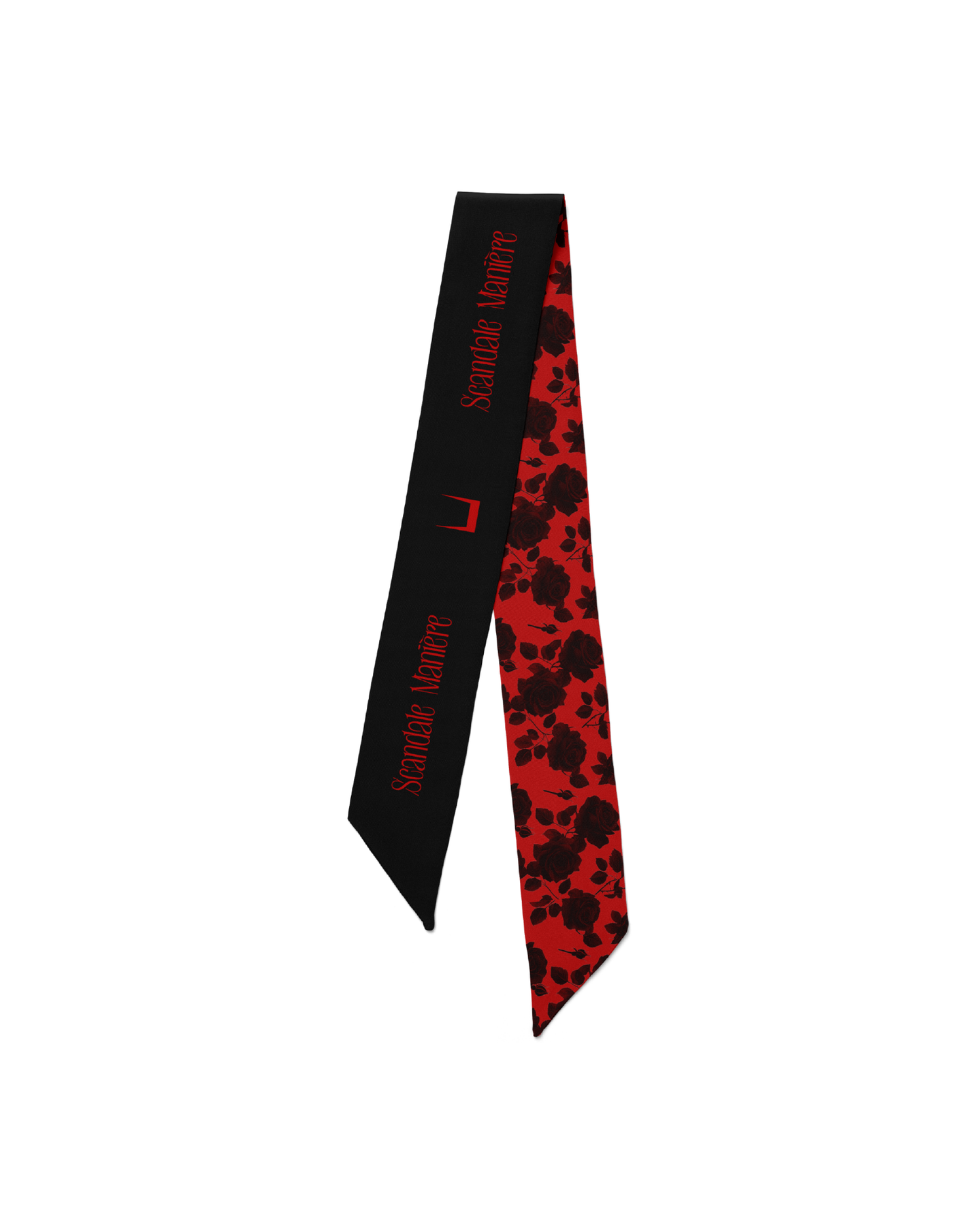 Твилли Scandale Manière — универсальный аксессуар, который дополняет любой образ выразительным акцентом. Лента выполнена из мягкого армани-шёлка с контрастным сочетанием фирменного чёрного и алого оттенков и узором роз — символом страсти и уверенности.